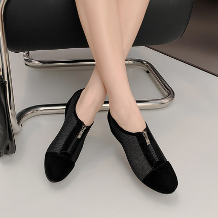 平底网鞋女圆头坡跟休闲鞋夏季运动鞋百搭网面透气单鞋内增高女鞋