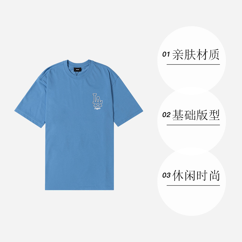 【自营】MLB短袖男装女装运动服麻蓝色时尚情侣休闲T恤3ATSB0343