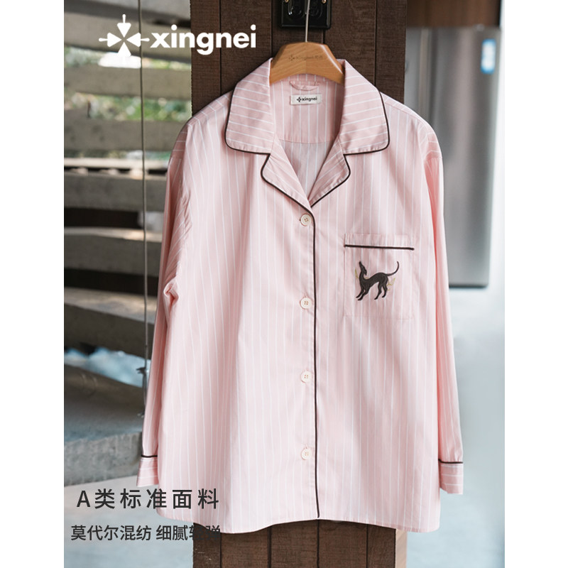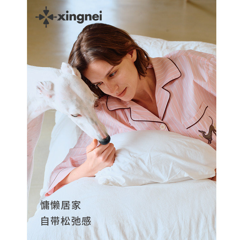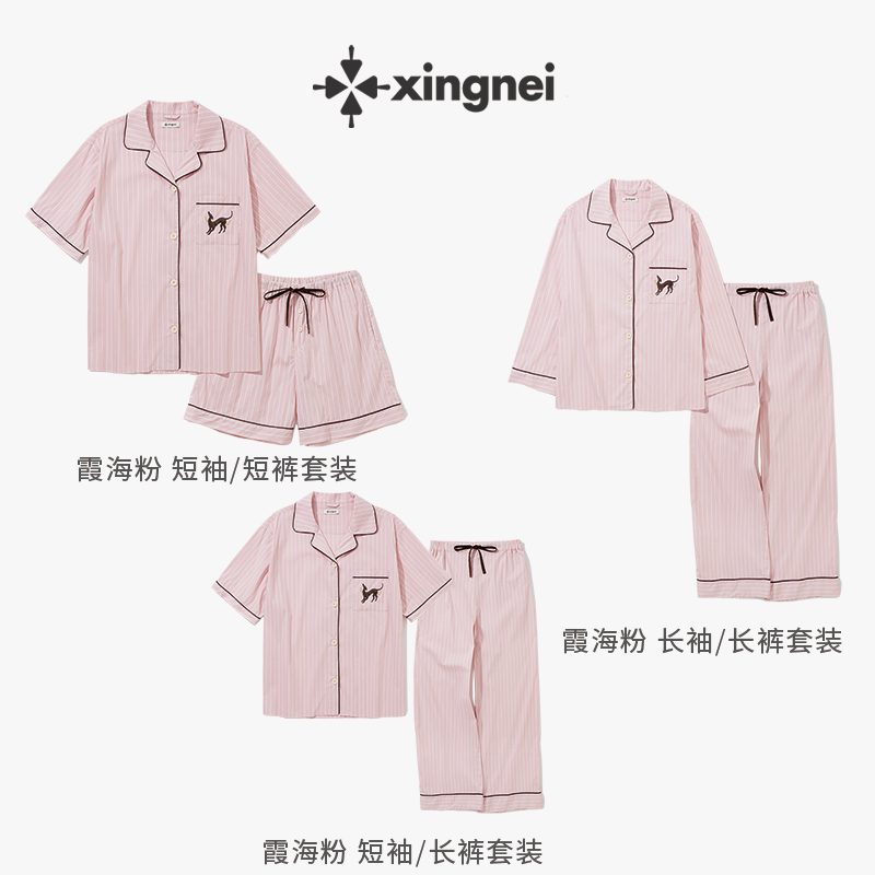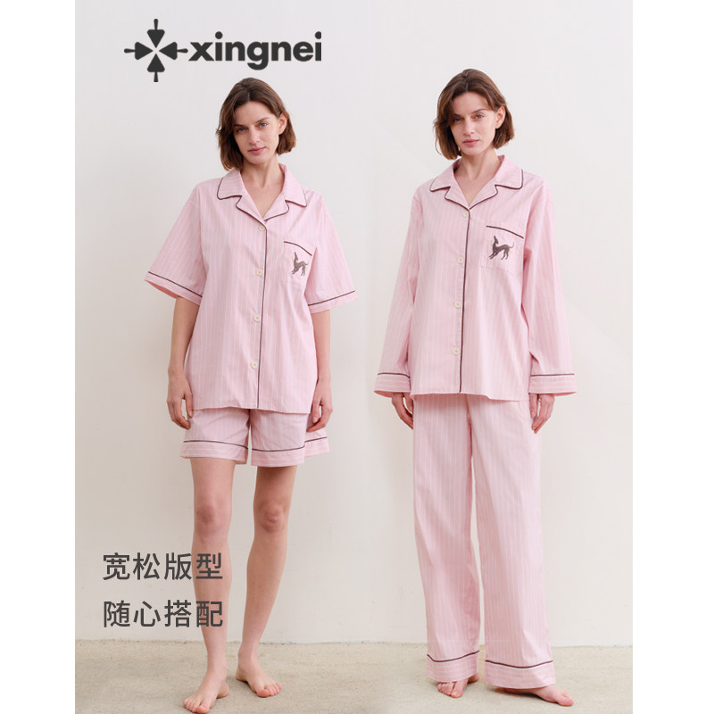 形内睡衣女条纹粉色套装古巴领春夏季2026新款可外穿高级感家居服