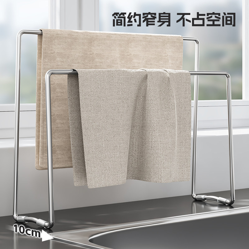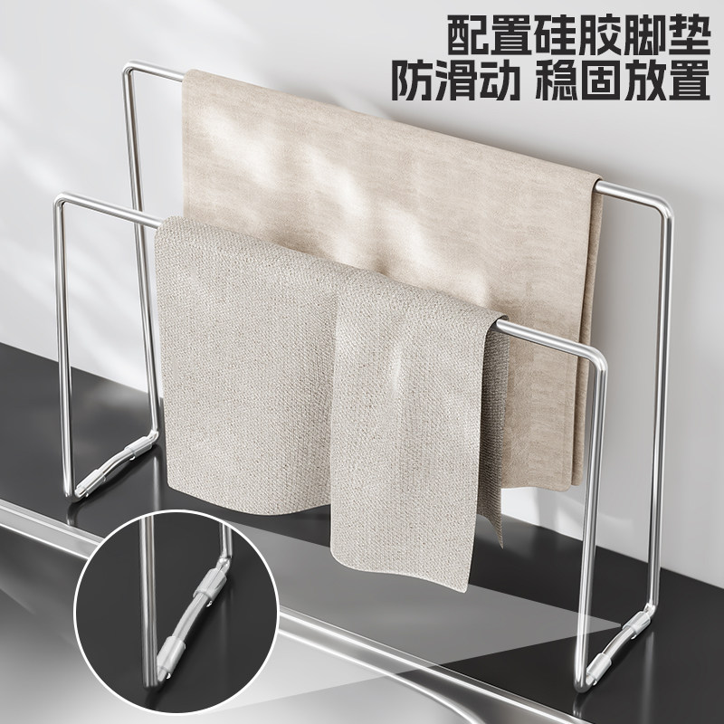304不锈钢抹布架厨房台面窄款洗碗手套沥水架子晾晒架毛巾置物架