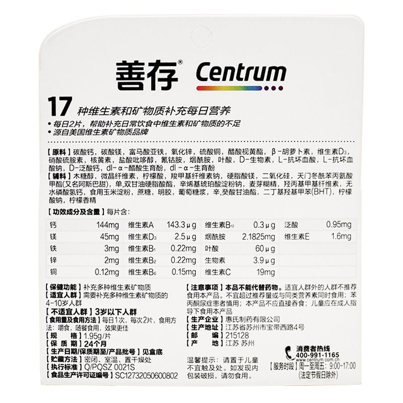 善存小佳维片儿童咀嚼片小儿成长营养零食复合多种维生素矿物质WJ