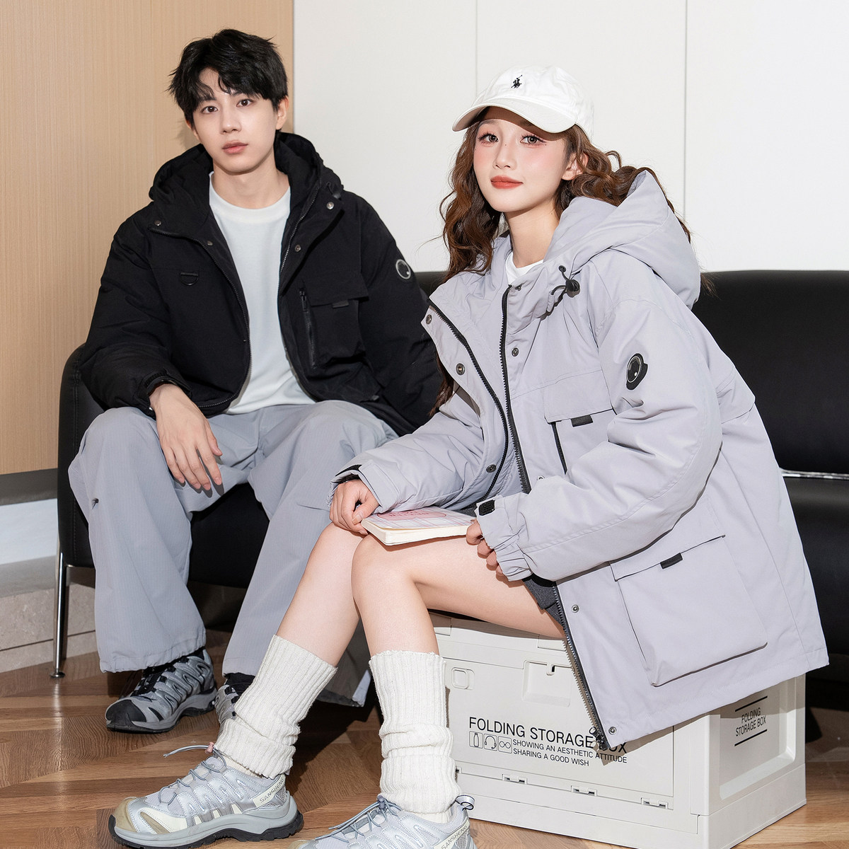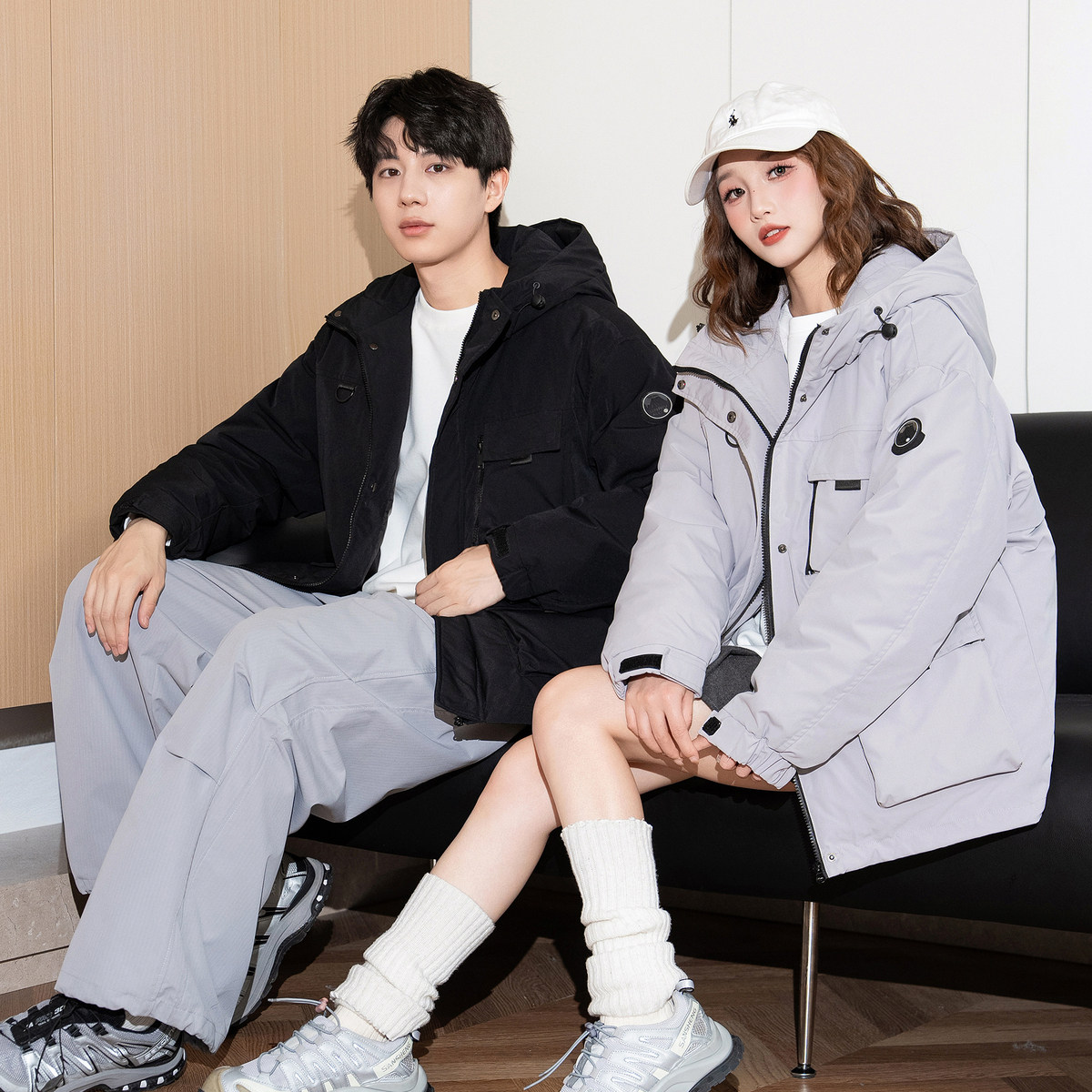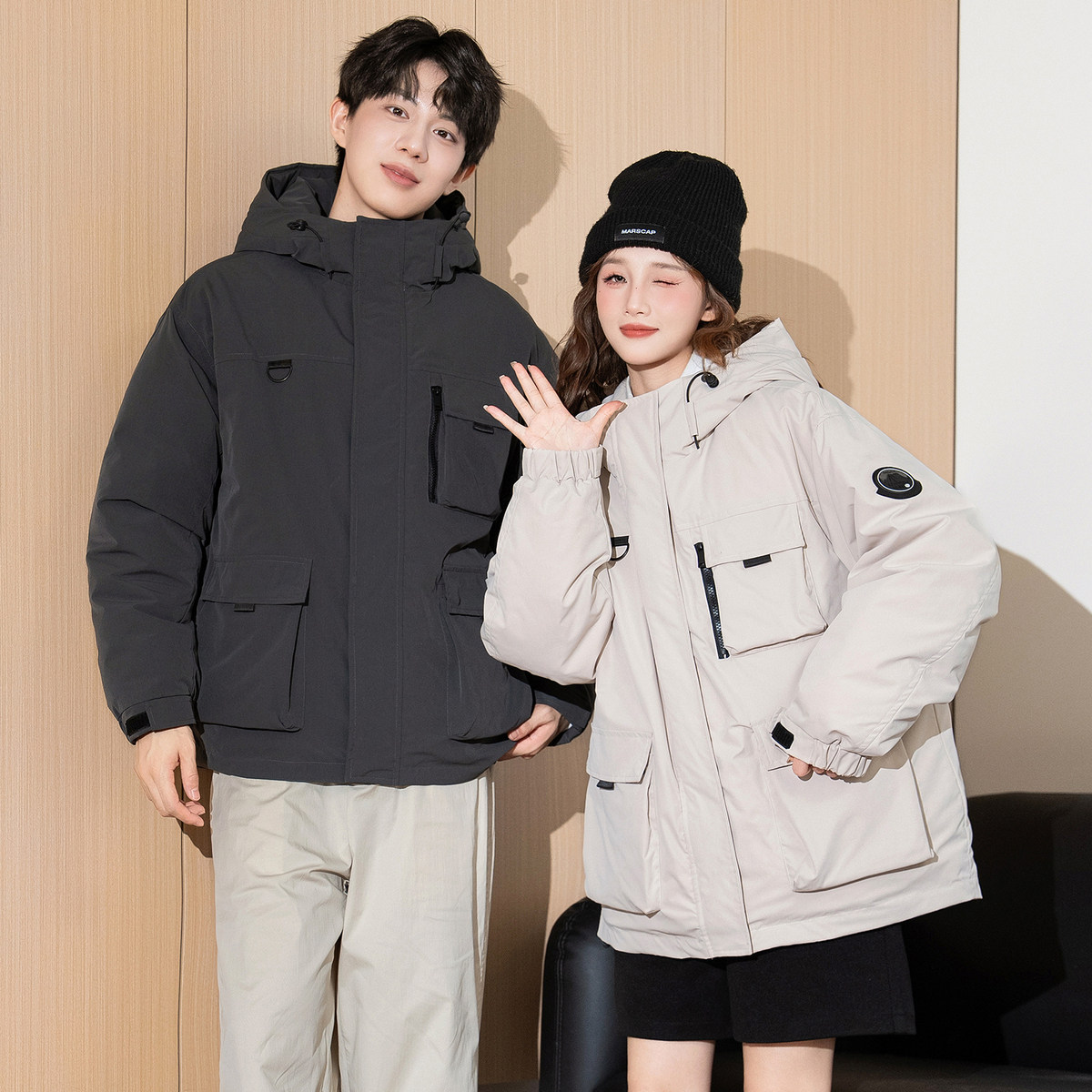 唐狮冬季新款情侣羽绒服男女连帽工装加厚户外冲锋少年外套潮