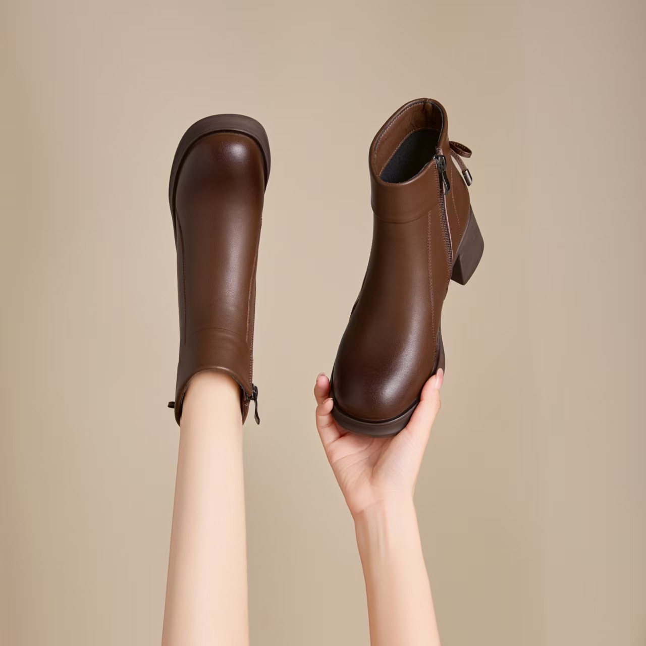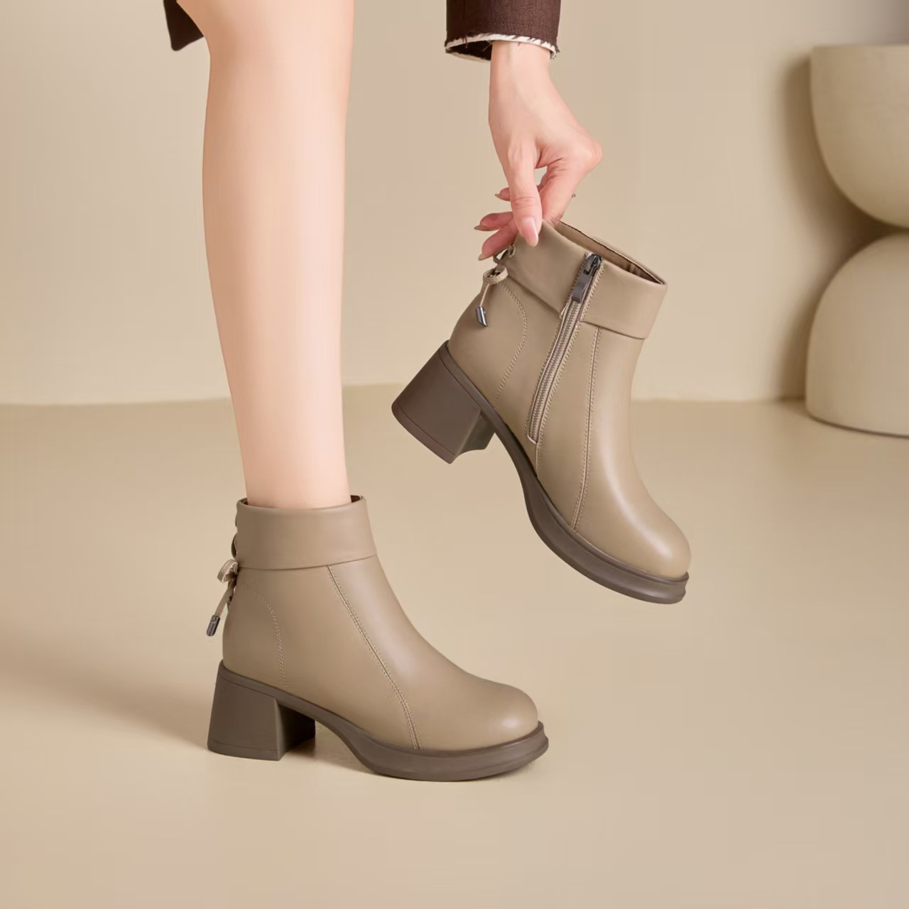 日本品质粗跟百搭短靴女款2025新款靴子秋冬季马丁靴真皮圆头高跟