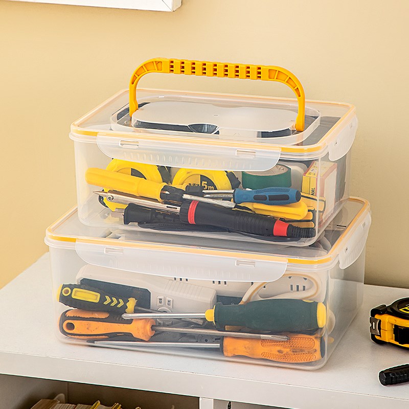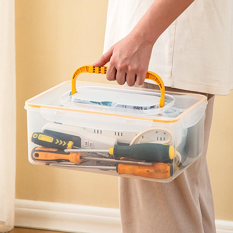 五金工具箱家用手提透明长方形螺丝零件配件收纳盒大号厚塑料整理