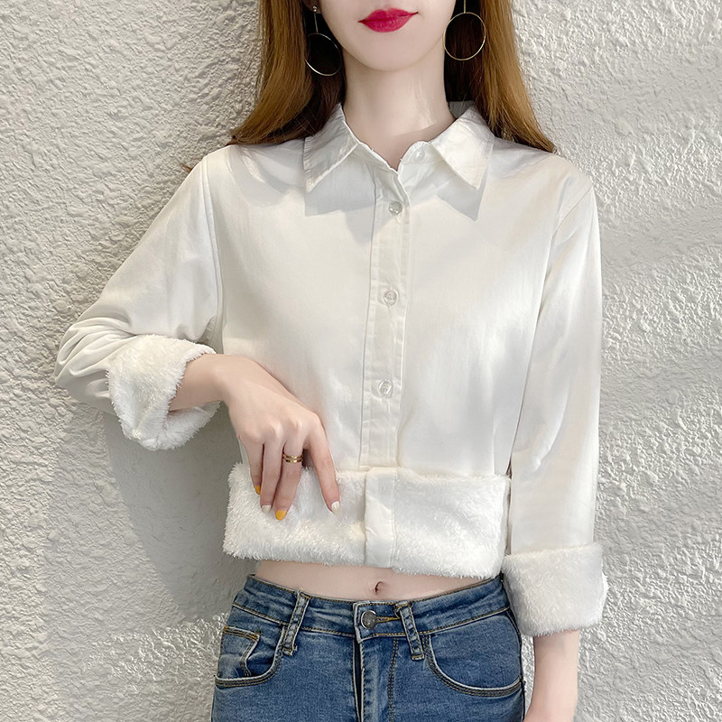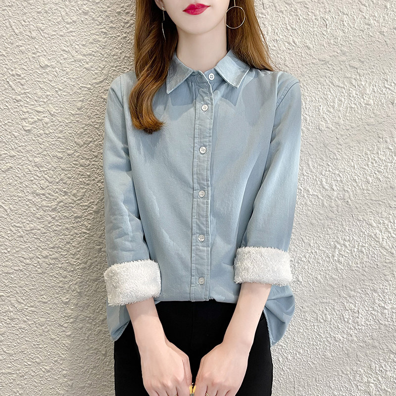 加绒衬衫女内搭2025秋冬新款加厚保暖时尚洋气加棉一体绒打底上衣