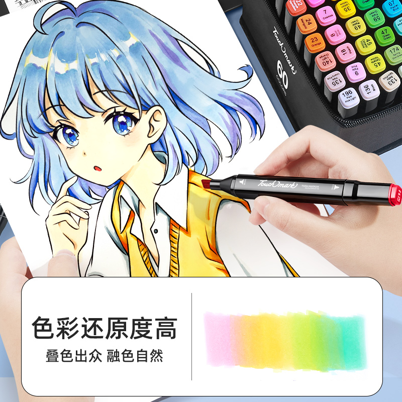 Touchmark油性马克笔学生美术专用水彩笔套装礼盒36/48/60/80/120色双头速干可加墨动漫儿童幼儿园小学生画笔