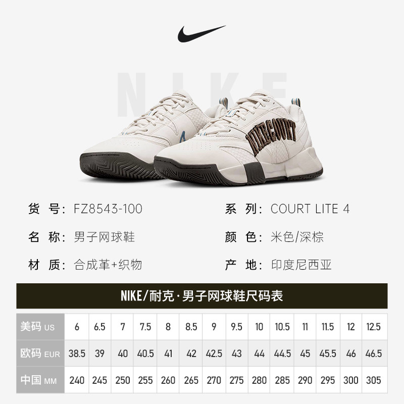 Nike耐克网球鞋男25新款COURT LITE 4 Heritage老爹运动鞋FZ8543