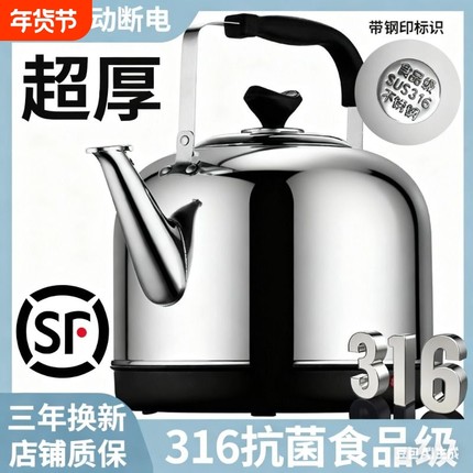 316不锈钢电热水壶烧水壶大容量自动断电保温电壶家用电水壶鸣笛