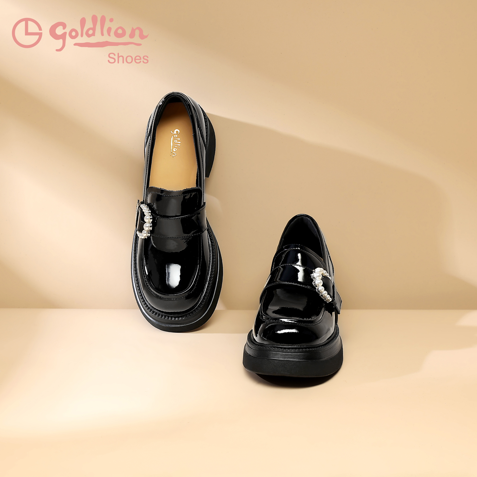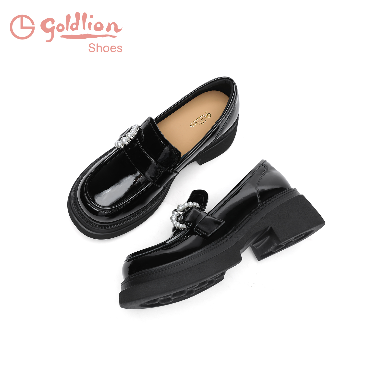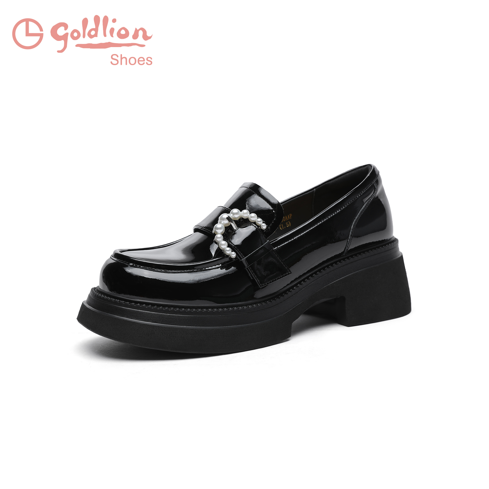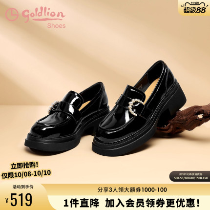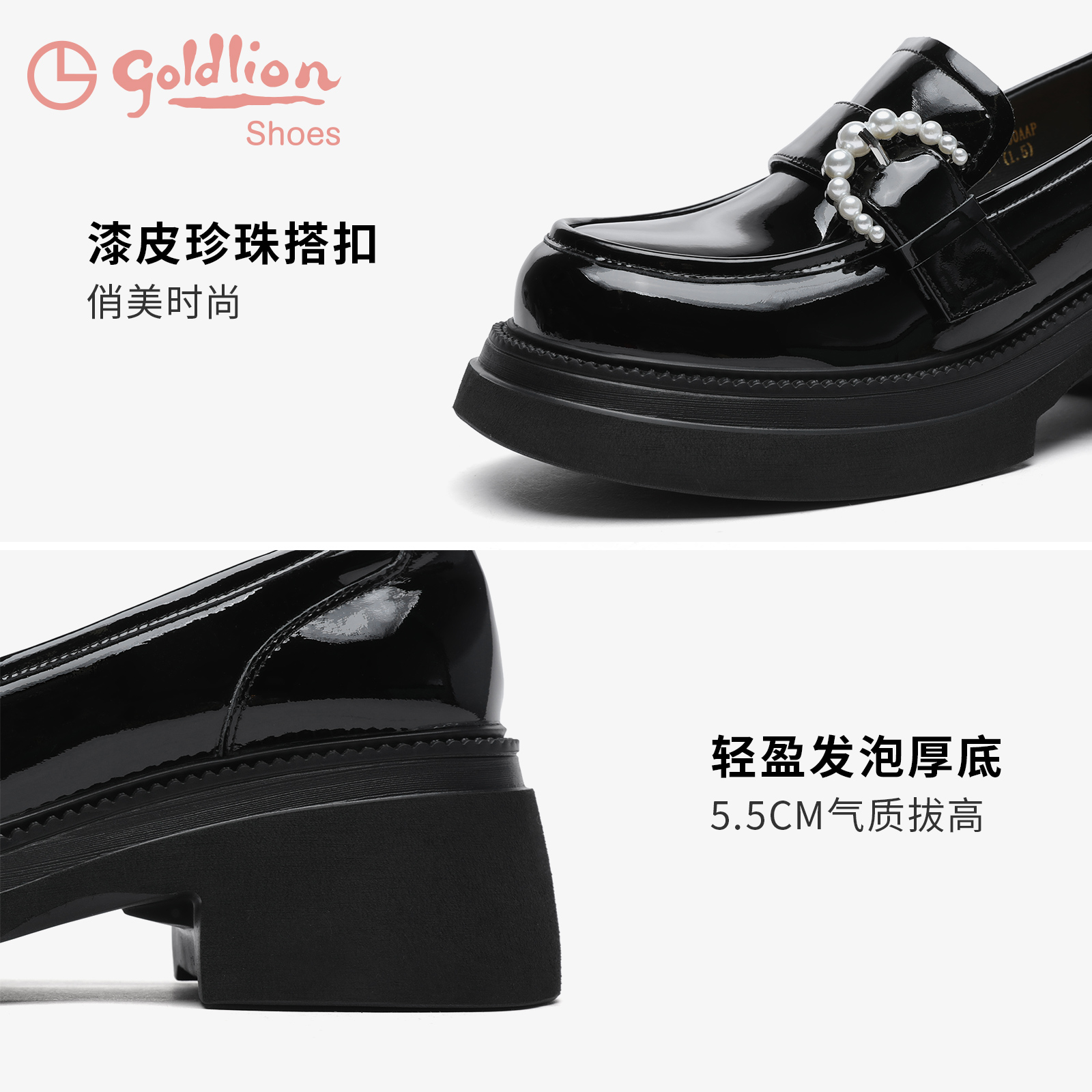 金利来女鞋商场同款春季英伦风黑色小皮鞋一脚蹬真皮厚底乐福鞋女