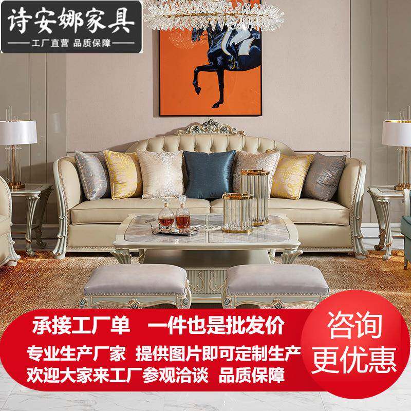 式发组欧合厅简客沙33850欧皮艺沙发美式新古典奢华实木小户型别