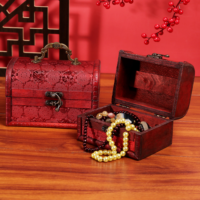 2025新款精致结婚首饰盒红色礼物盒复古带锁中式珠宝收纳盒小木盒