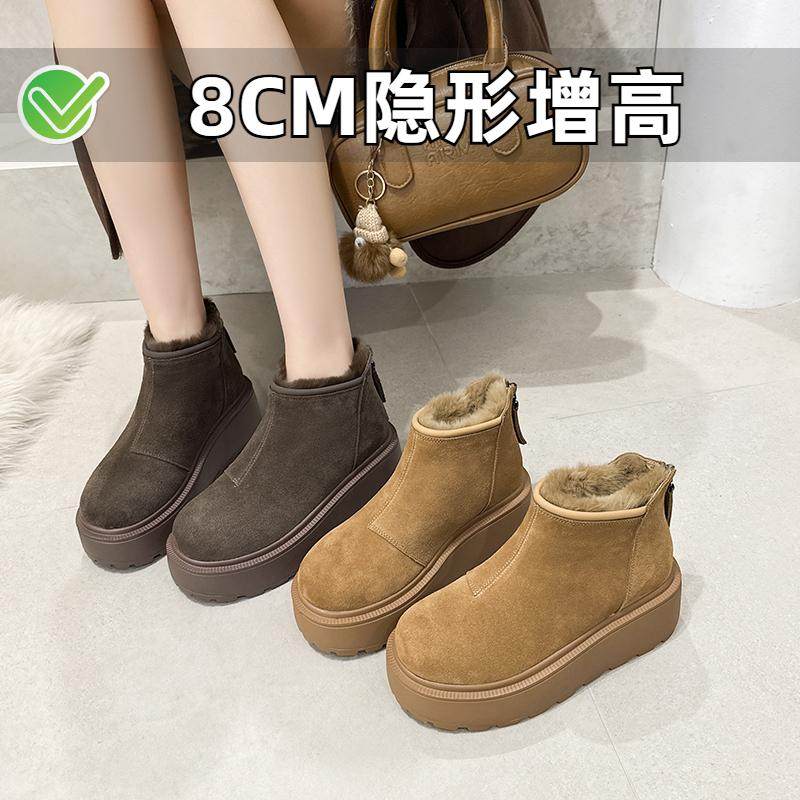 小个子秋冬真皮厚底雪地靴