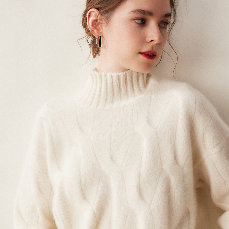 一件过冬~重工麻花加厚baby小山羊绒衫女高领针织衫宽松慵懒毛衣