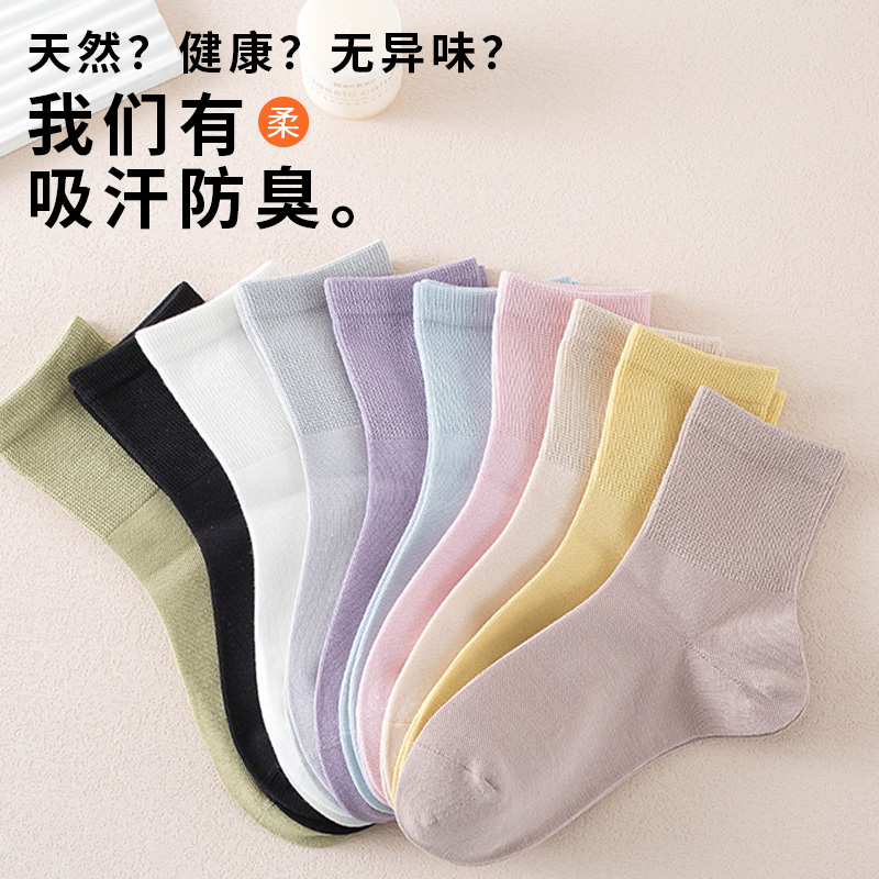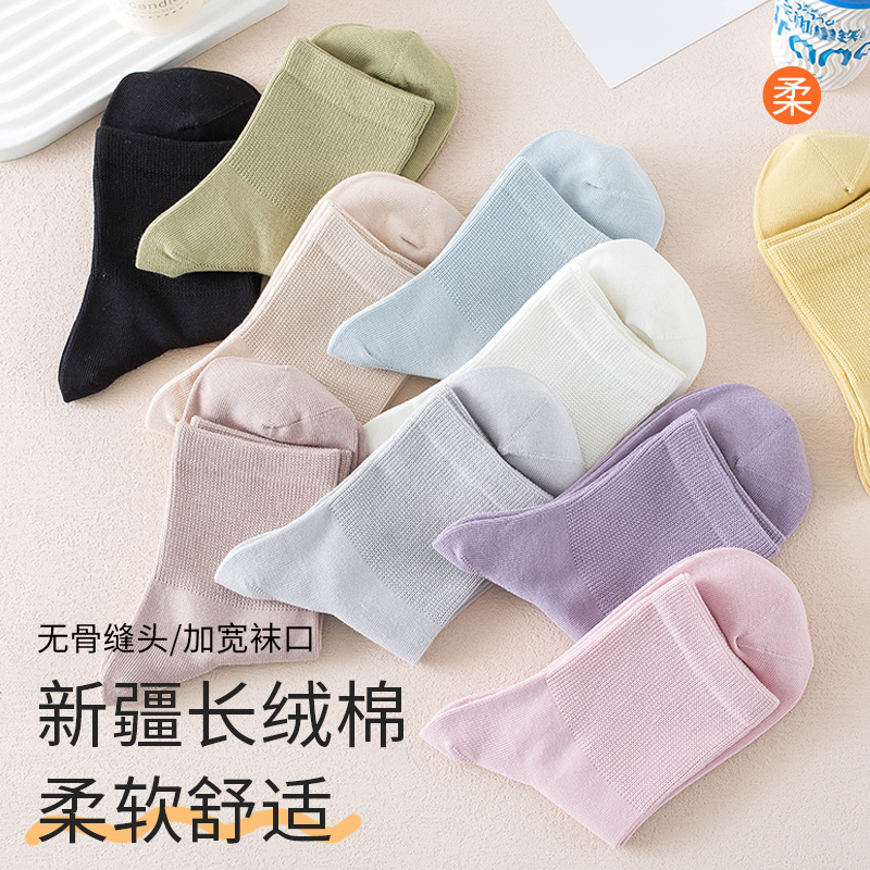 舒适美纯棉中筒无骨袜防臭抗起球纯色可爱少女秋冬透气百搭女袜子