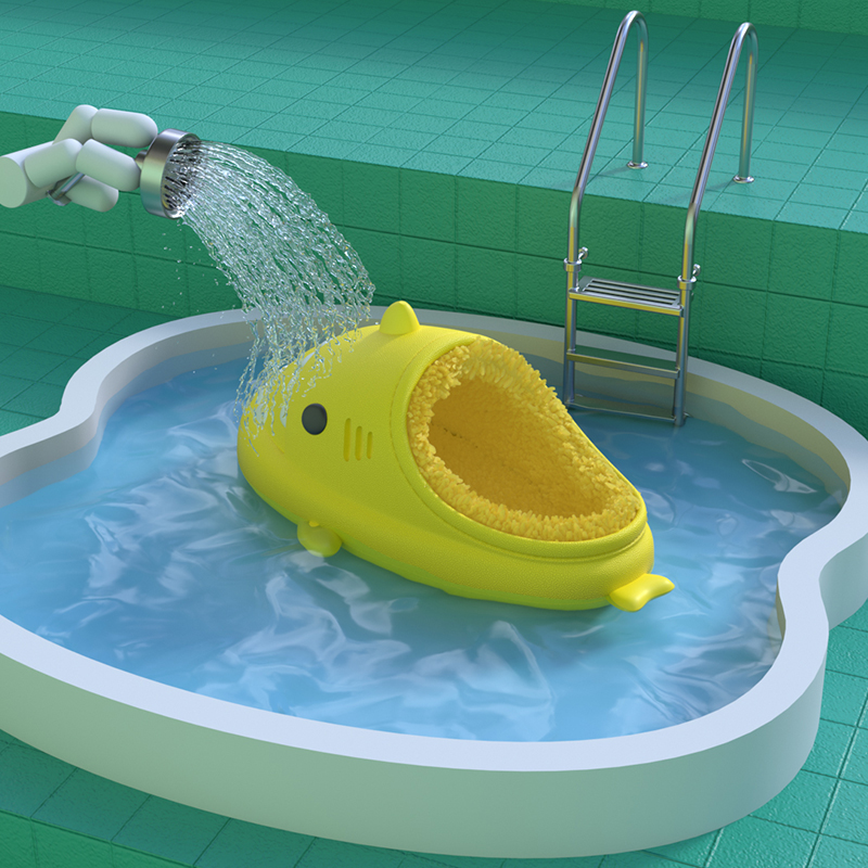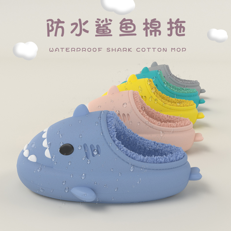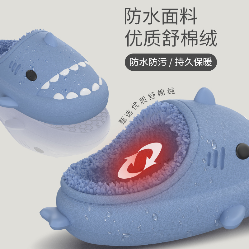 小鲨鱼防水防污儿童棉拖鞋男童冬季保暖防滑小孩宝宝棉拖鞋女包跟