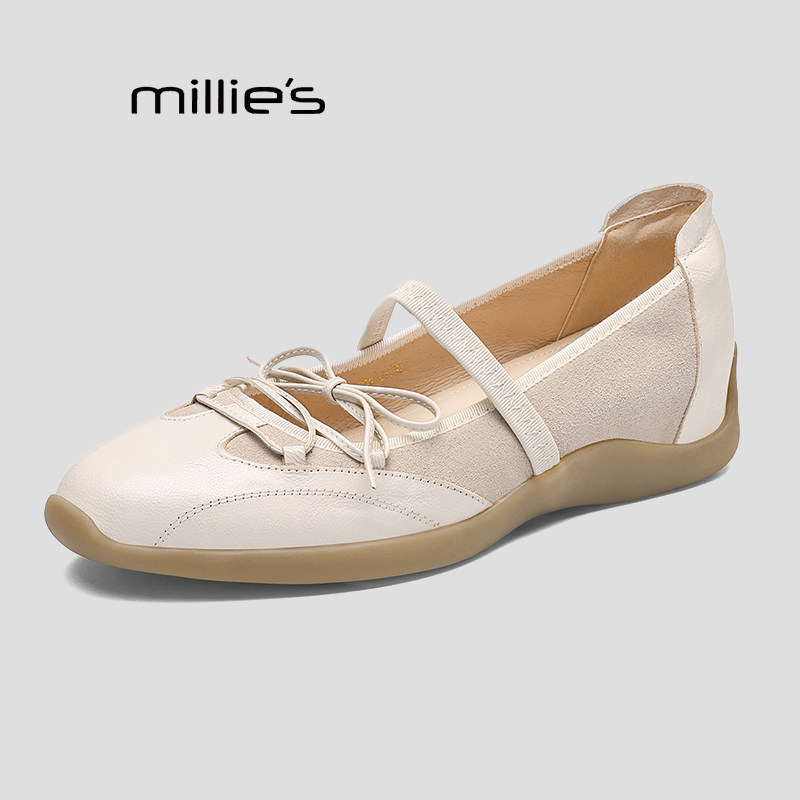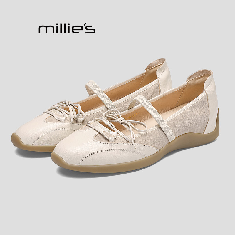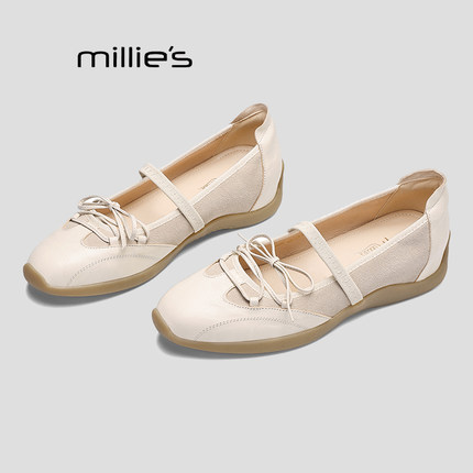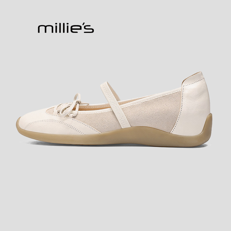MILLIE'S/妙丽运动芭蕾德训玛丽珍女内增高银色浅口单鞋春季新款Q