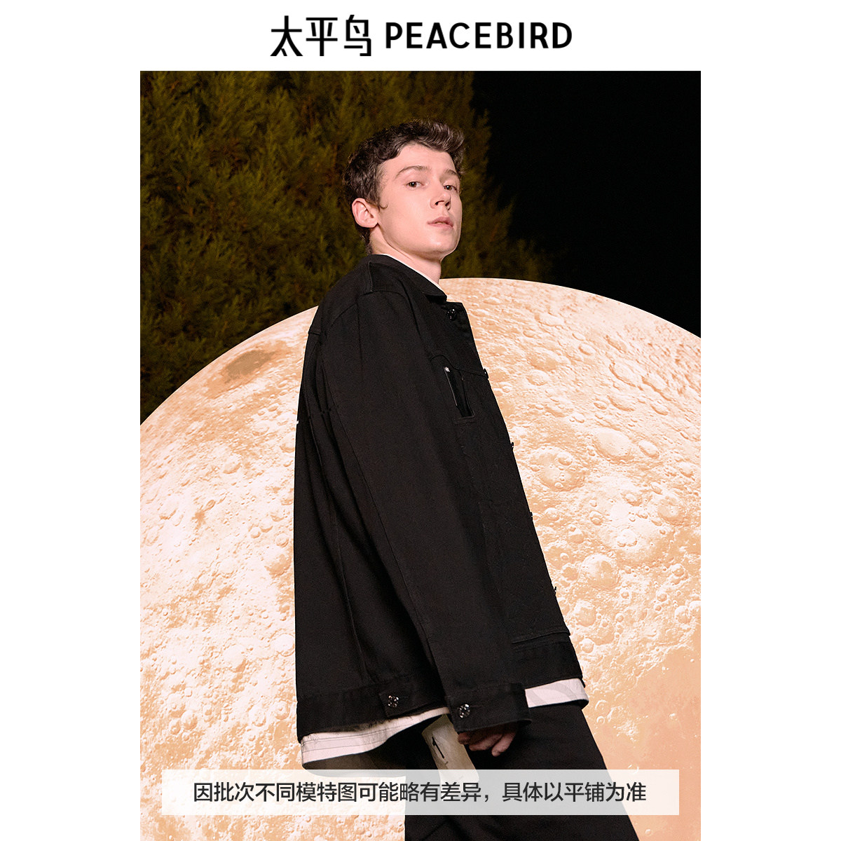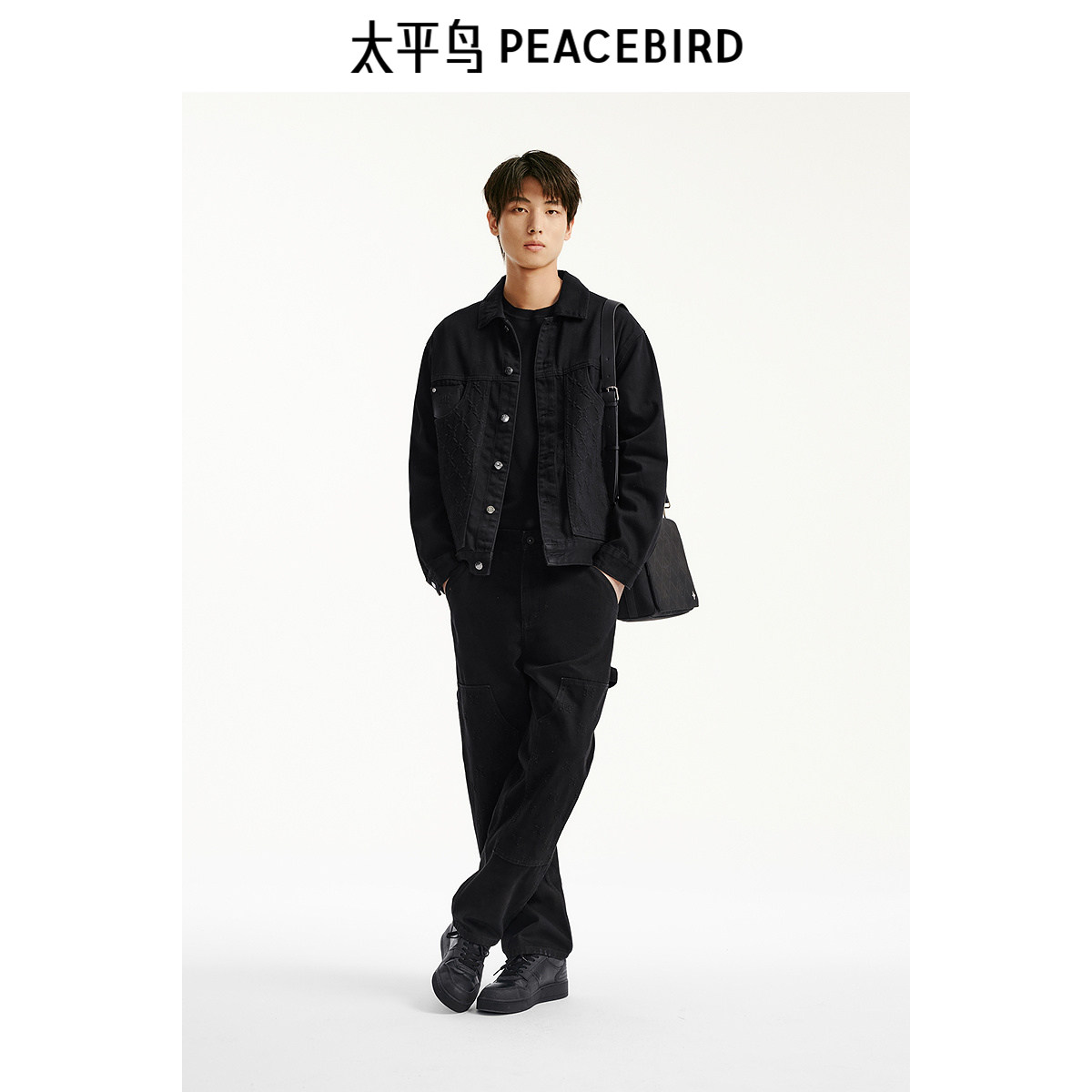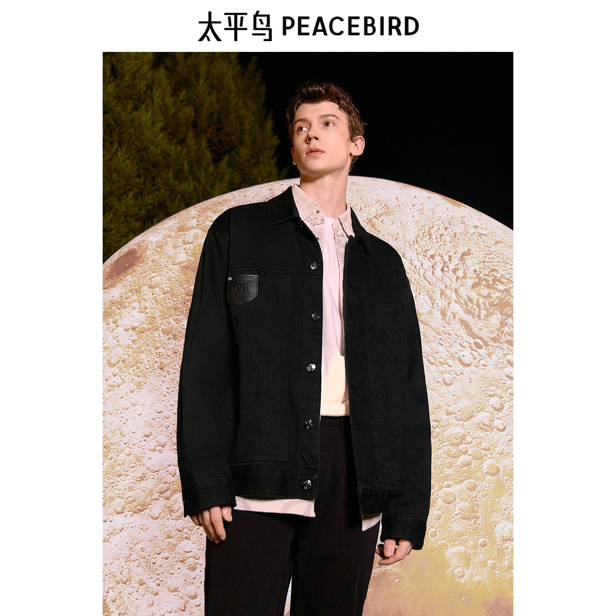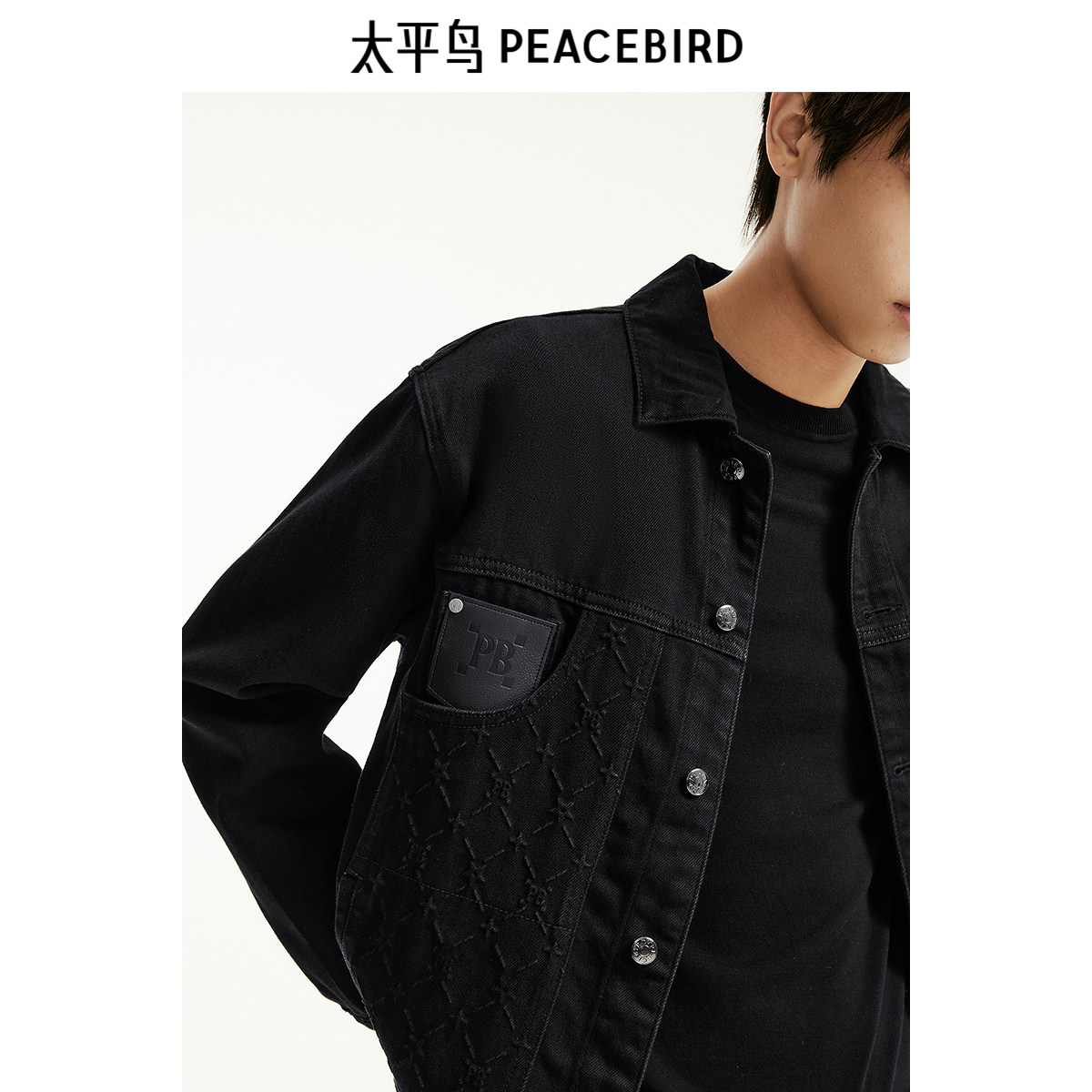 太平鸟男装冬季百搭牛仔夹克男外套潮复古质感皮标提花丹宁外套