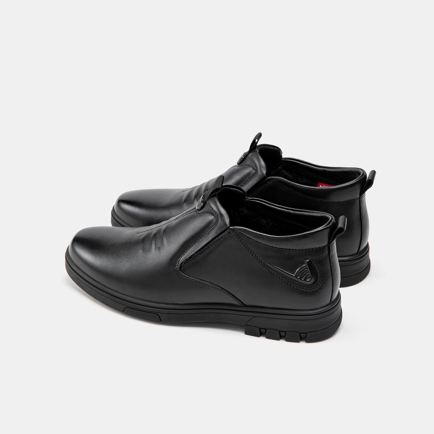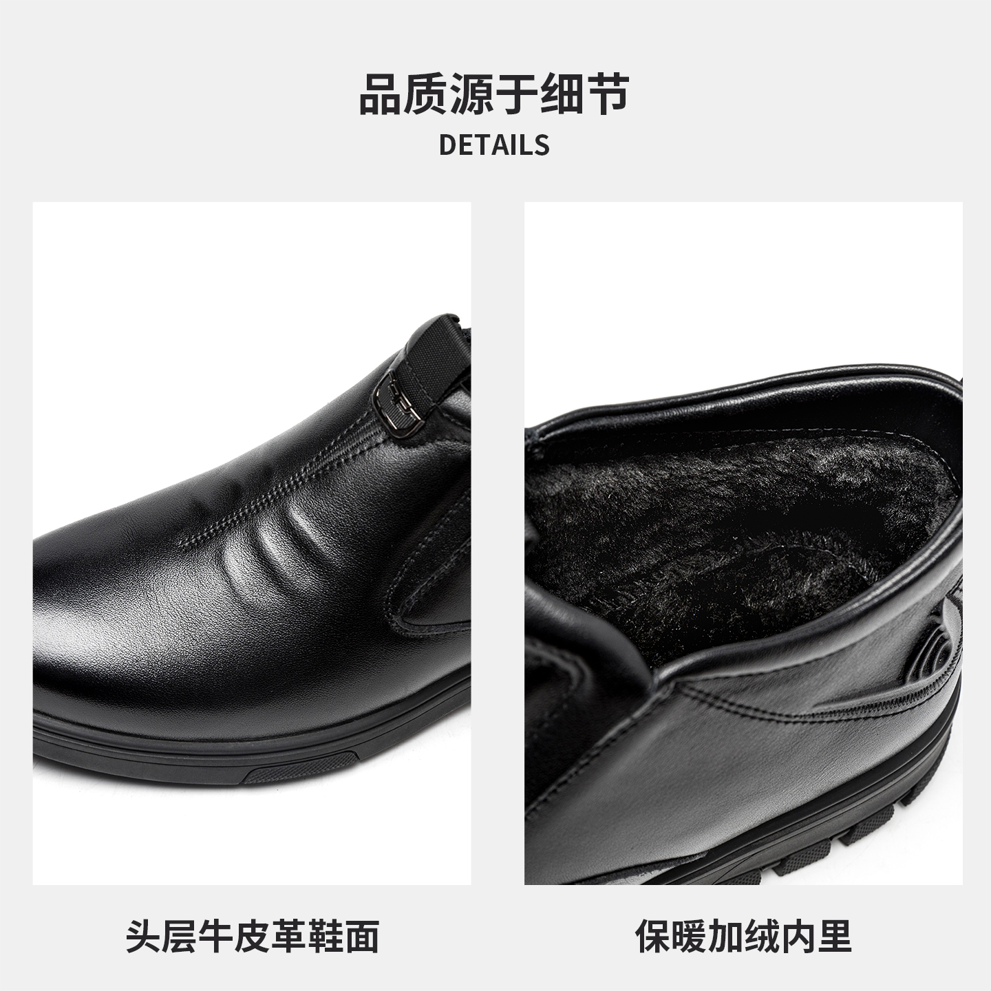 奥康男鞋2025冬季新款真皮加绒保暖高帮套脚皮鞋商务正装爸爸棉鞋