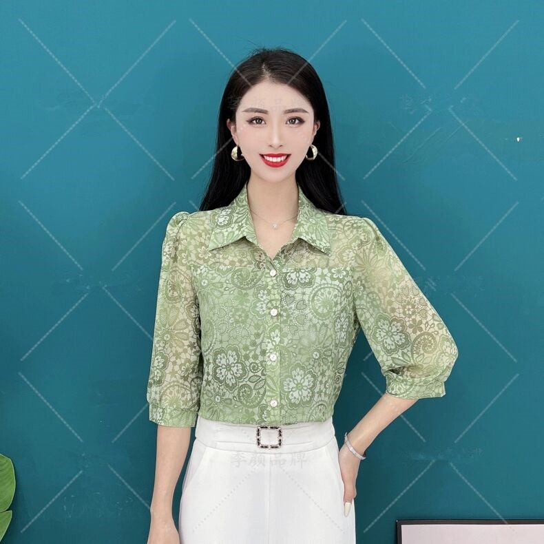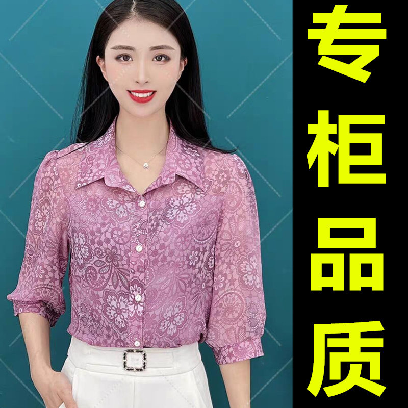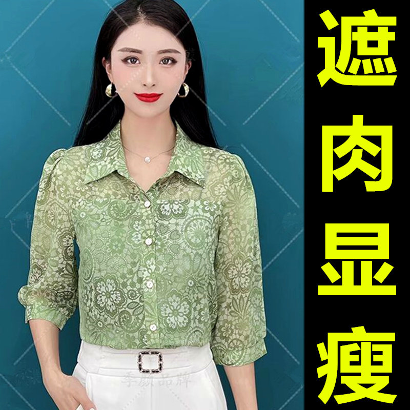七分袖垂感冰丝衬衫2025新款中年妈妈遮肚显瘦宽松洋气雪纺上衣