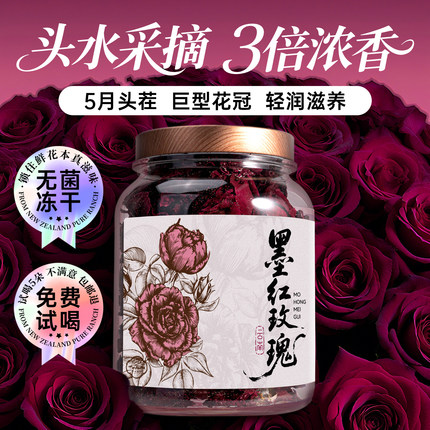 五虎云南墨红玫瑰花茶官方正品冻干重瓣玫瑰花泡水喝罐装
