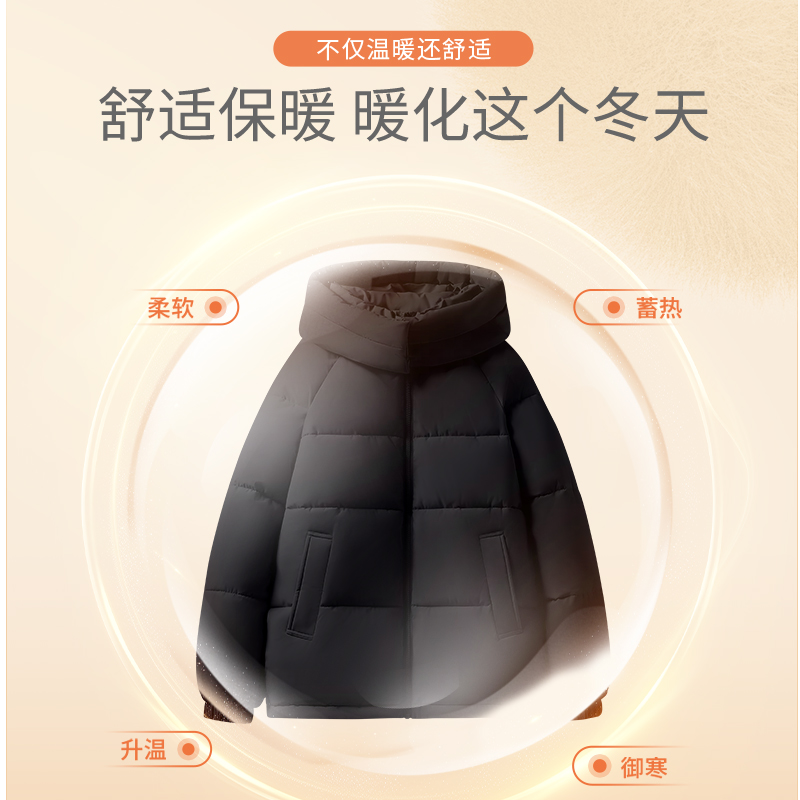 NOB真维斯加厚保暖黑色棉服2025秋冬季女士新款宽松休闲连帽外套