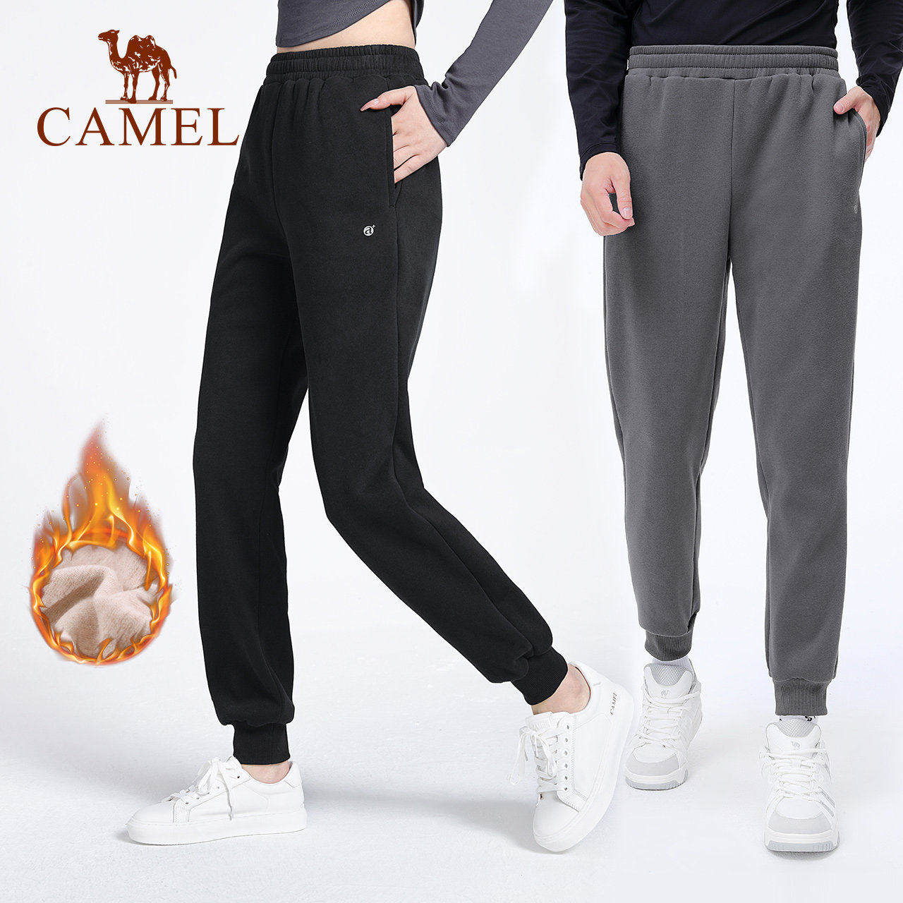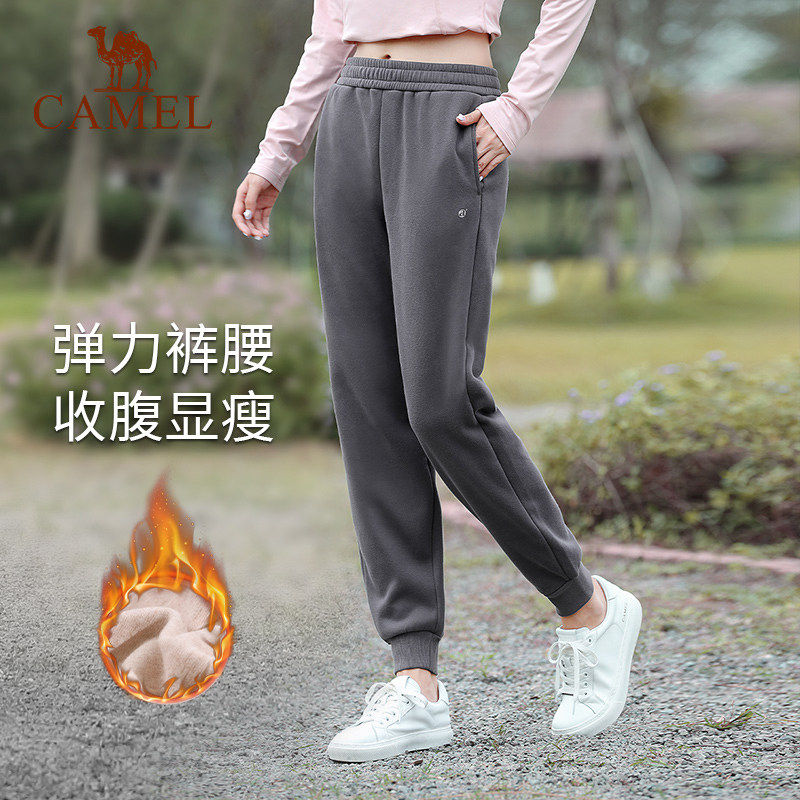 骆驼瑜伽裤女款秋冬加绒保暖舒适运动裤时尚健身直筒束脚休闲长裤