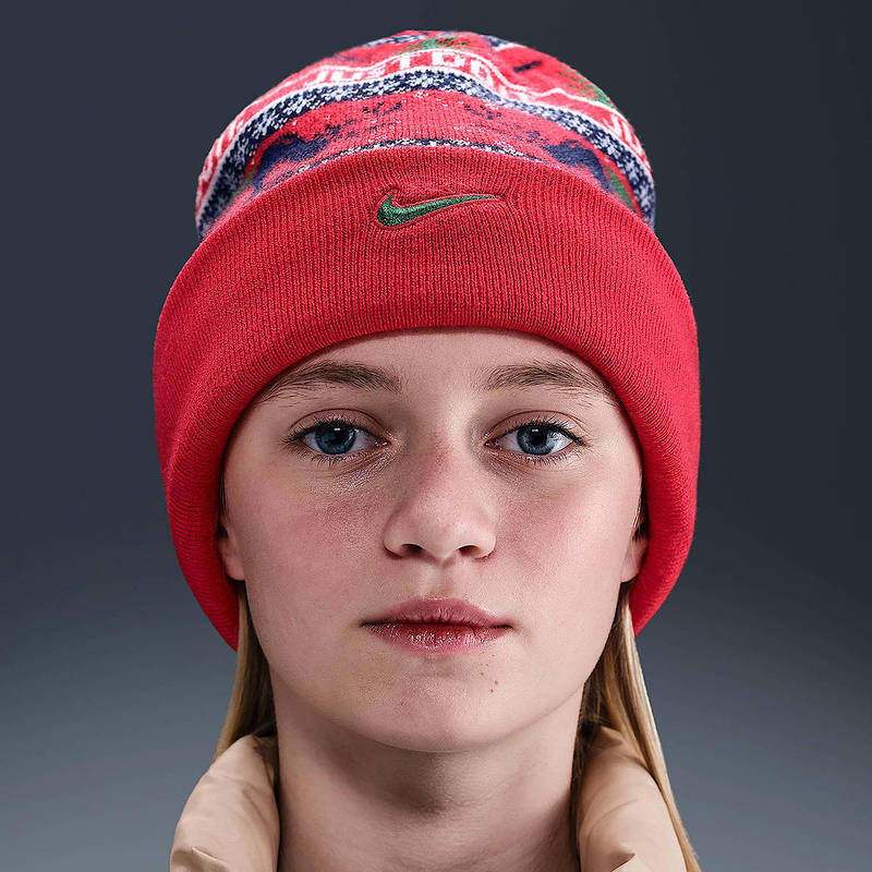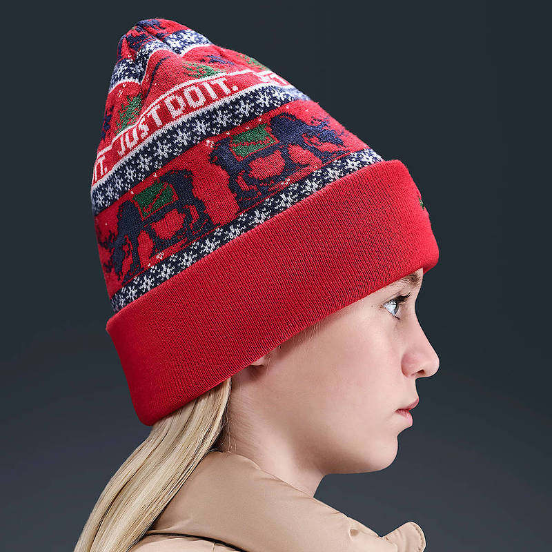 NIKE耐克帽子男女大童针织帽冬季图案印花运动帽毛线帽HV7025-633