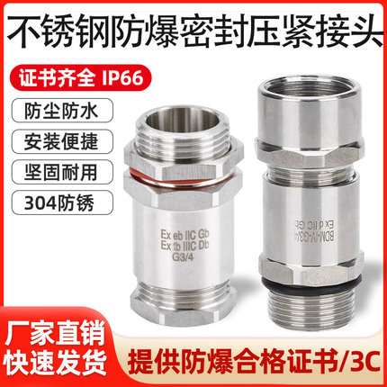 304不锈钢防爆格兰头G3/4金属隔爆密封接头BDM-VI金属防爆接头