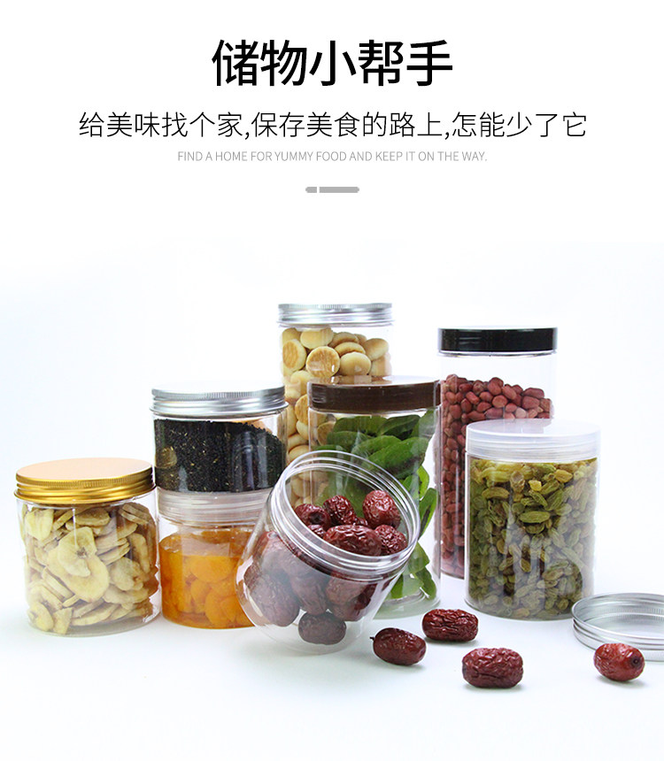 10个透明食品级塑料瓶蜂蜜糖果饼干零食收纳盒圆形塑料密封罐带盖