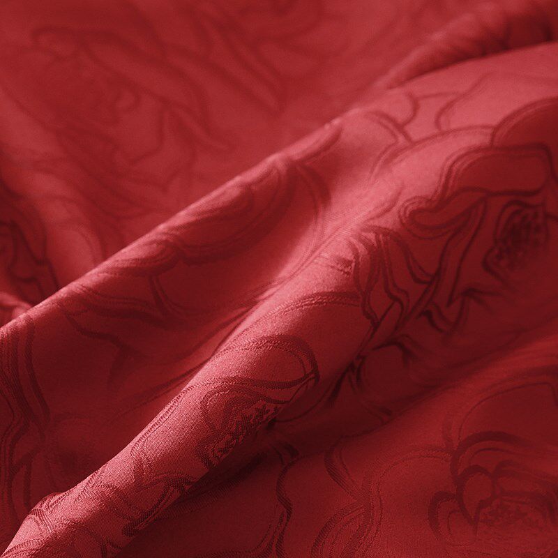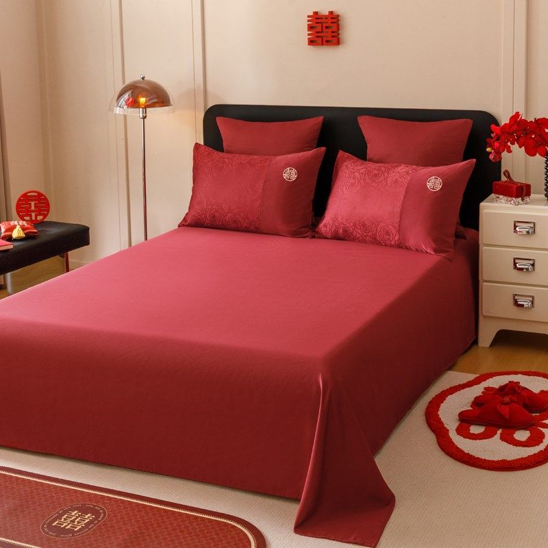 简约160支长绒棉结婚四件套红色印花卉被套床单婚庆婚房床品4