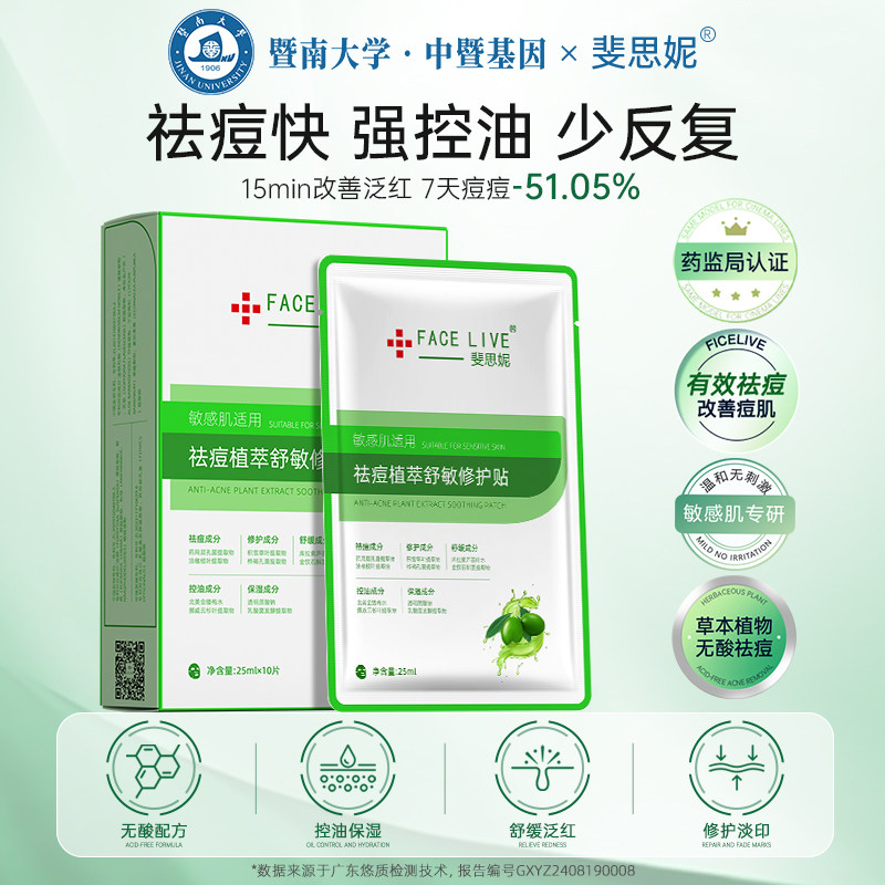 【U先试用】斐思妮水杨酸祛痘面膜胶态硫精华液改善痘肌淡痘印8片