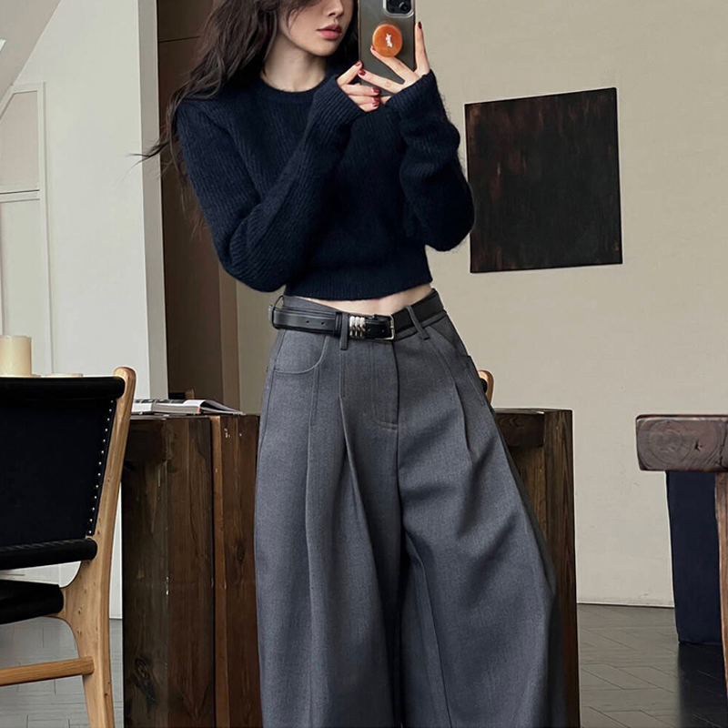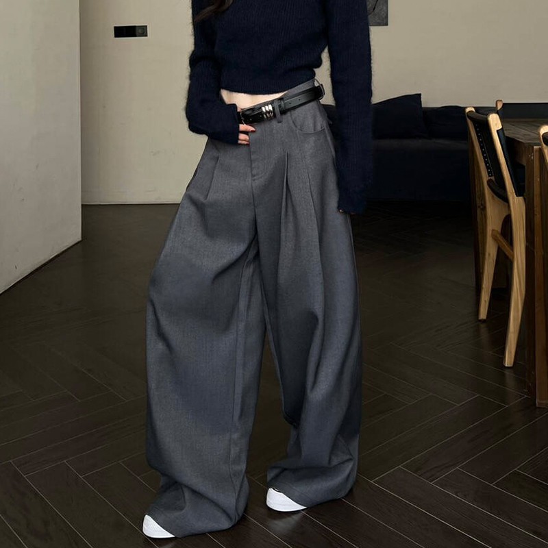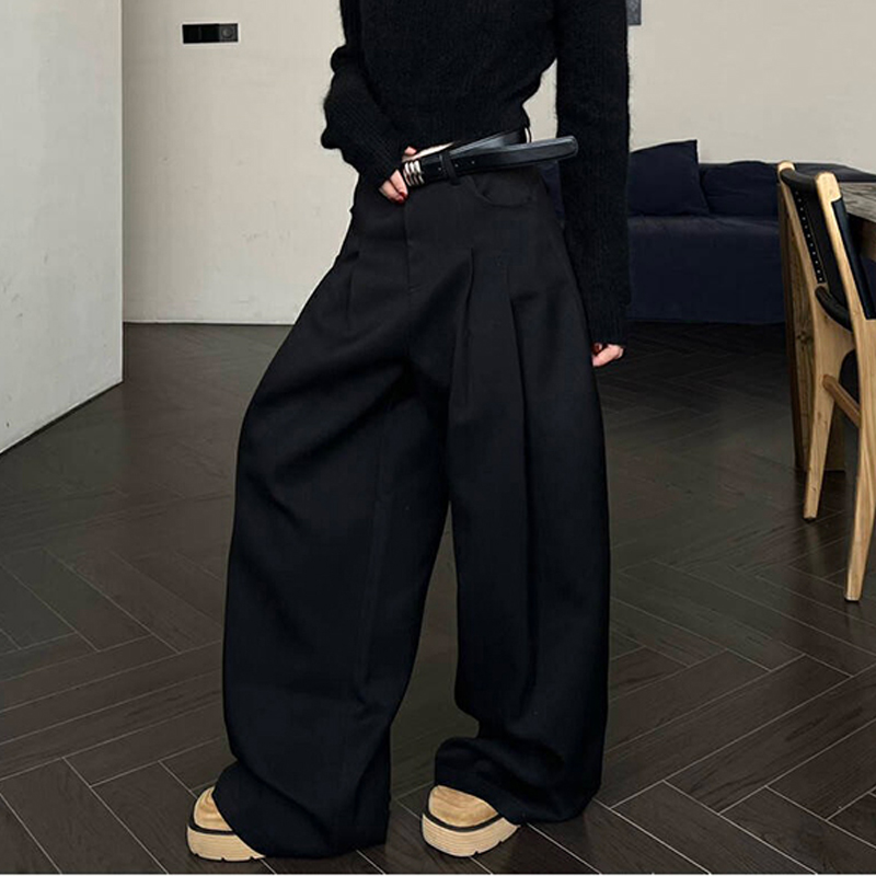 高级感西装阔腿裤女2025春季新款弯刀裤高个子加长版宽松直筒长裤