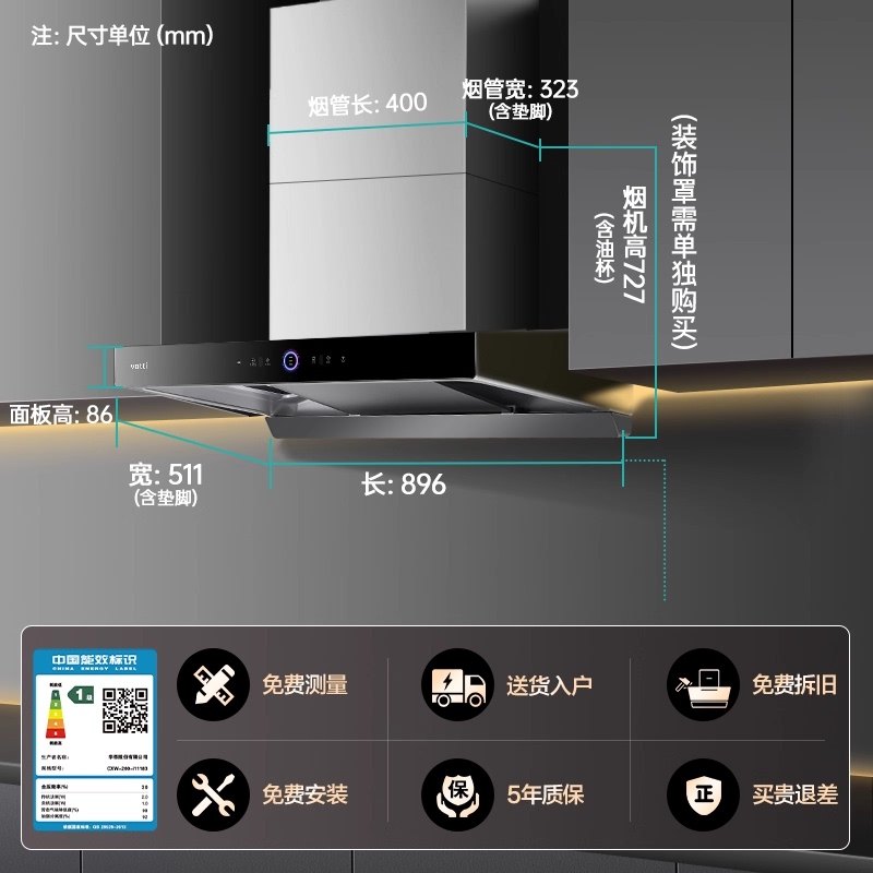 华帝三腔S12抽排油烟机家用厨房大吸力变频顶吸油机官方旗舰店