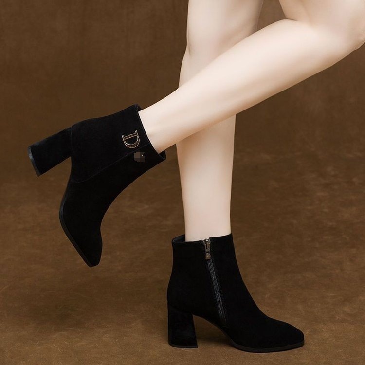 时装短靴女2025新款秋冬加绒女士粗跟短靴高跟鞋短筒气质裸靴子