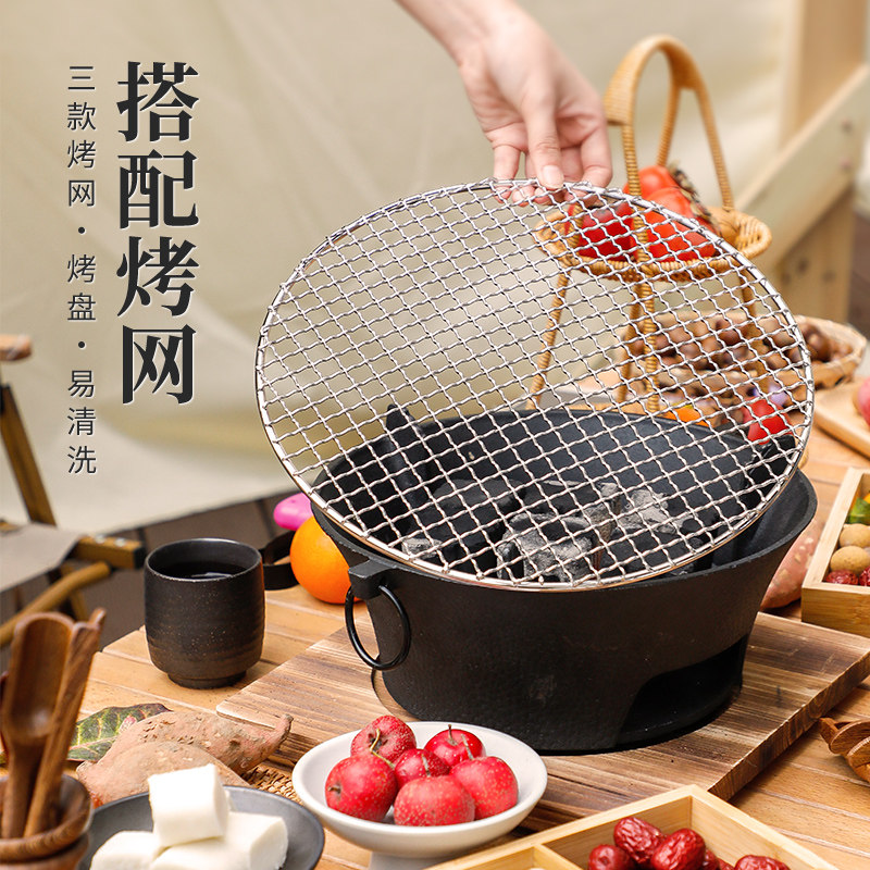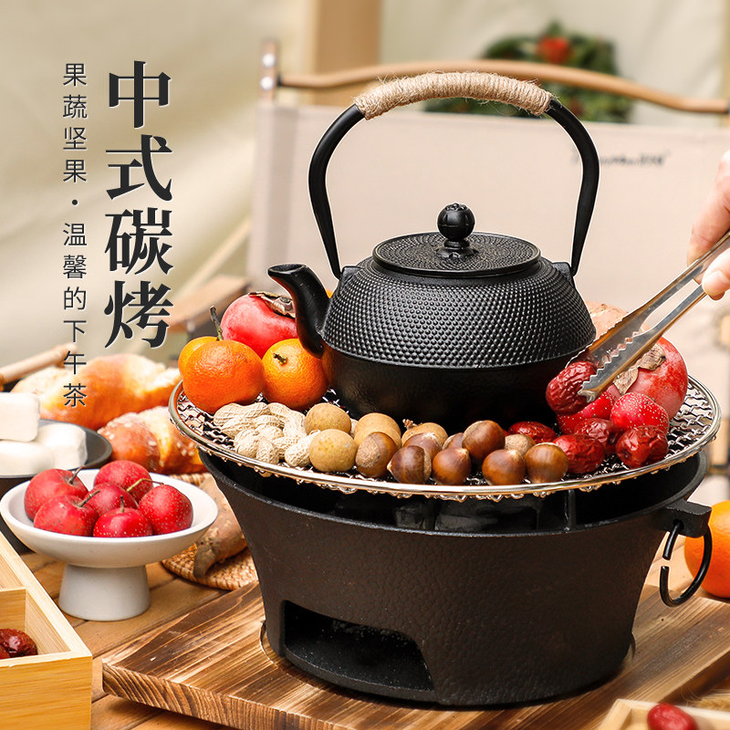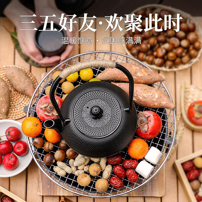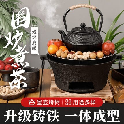 网红围炉煮茶家用室内烤茶炉全套装铸铁木炭炉子打边炉小烧烤火炉