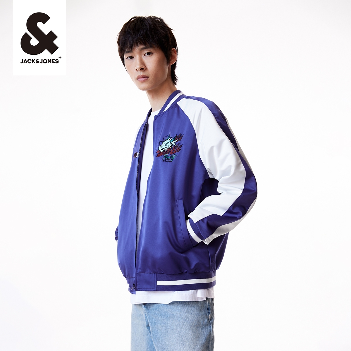 t区绫致杰克琼斯25年春夏日常基础拉链门襟棒球服夹克外套男装