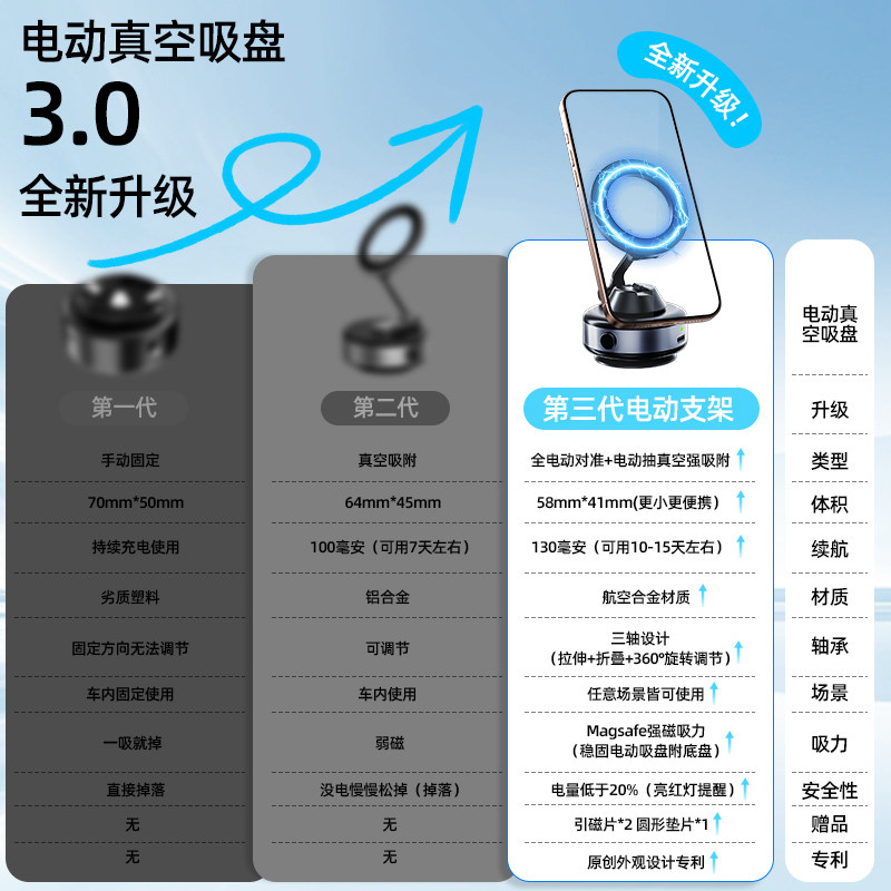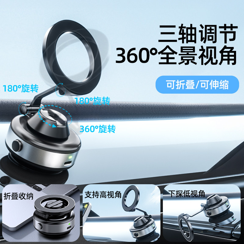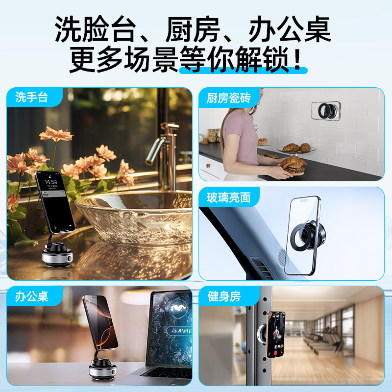 Aresh电动真空吸附磁吸手机支架自拍神器360度升降旋转适用苹果Magsafe桌面墙壁浴室车载导航vlog直播吸盘