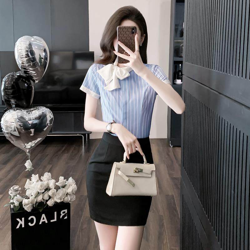 职业衬衫女长袖设计感小众衬衣春秋法式别致气质时尚短袖雪纺上衣