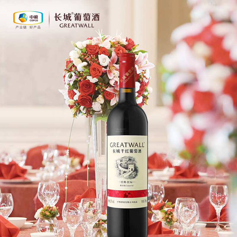 长城干红葡萄酒华夏经典红标解百纳红酒750ml*6整箱正品热销