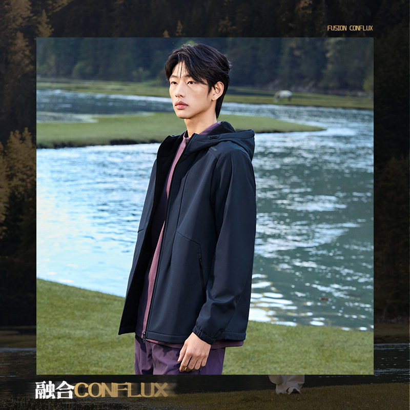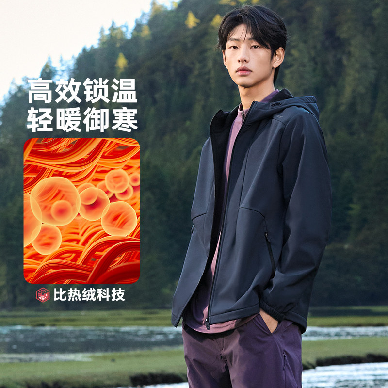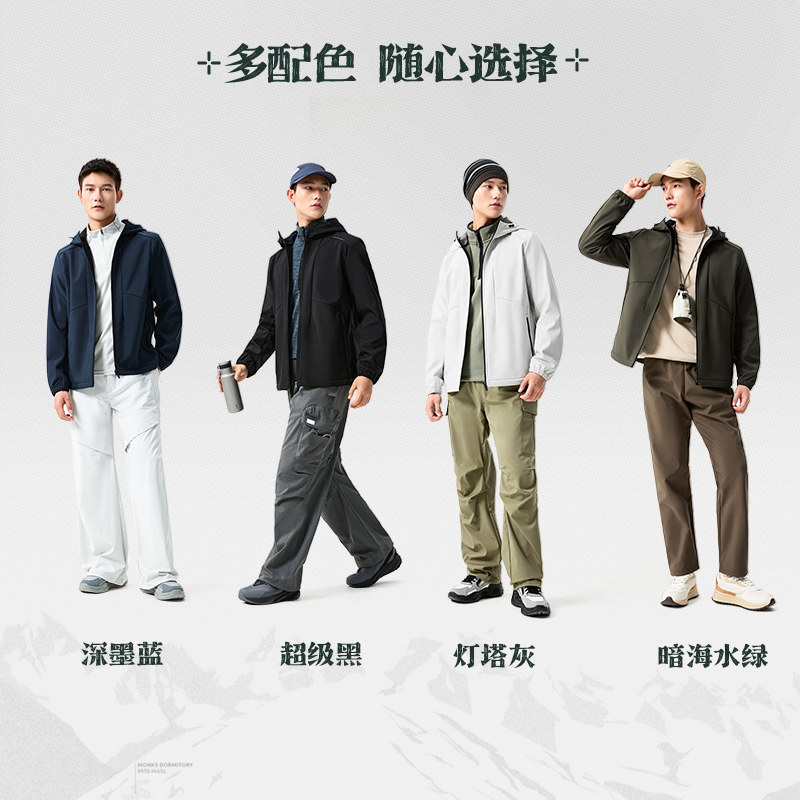 361三防运动外套2026春季雨屏梭织加绒夹克男士保暖上衣连帽风衣