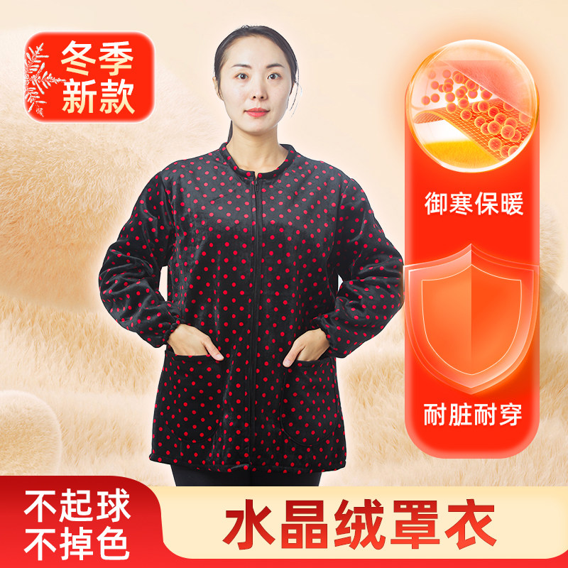 羽绒服罩衣成人女秋冬韩版拉链外套水晶绒护衣长袖厨房围裙工作服