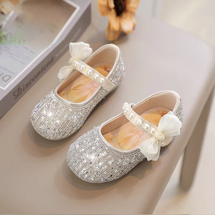 真皮女童公主鞋水晶鞋儿童2026春秋新款小女孩皮鞋软底配礼服单鞋