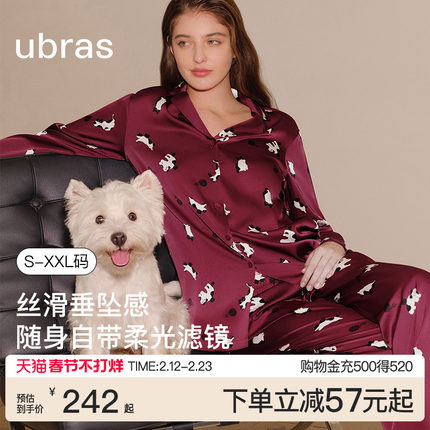 ubras流光家居服女士缎面睡衣长袖长裤可外穿情侣套装男款秋冬季