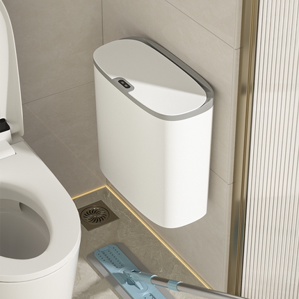 壁挂式智能垃圾桶感应厨房家用防水卫生间马桶电动带盖小纸篓米白