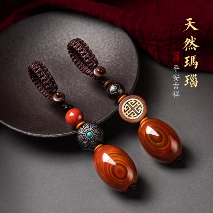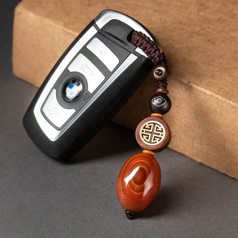 创意红玛瑙汽车钥匙扣挂件情侣男士高档小挂坠复古挂饰绳一物一证