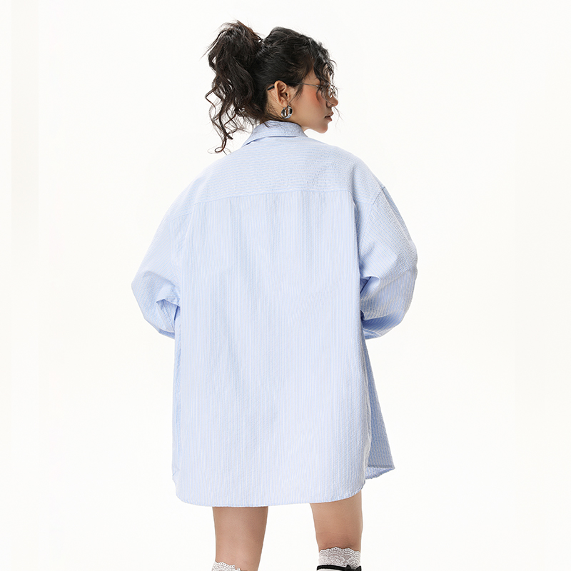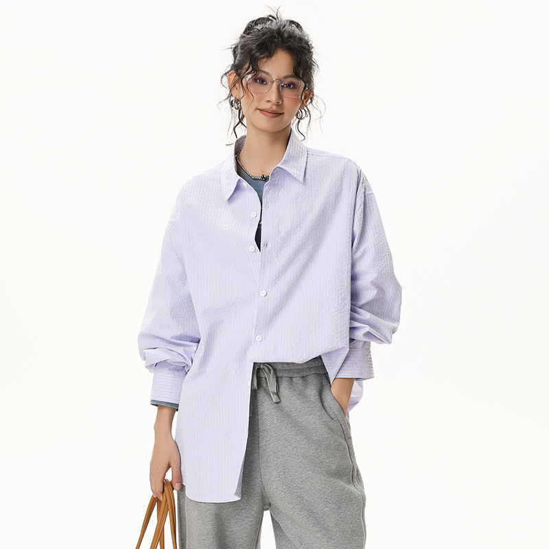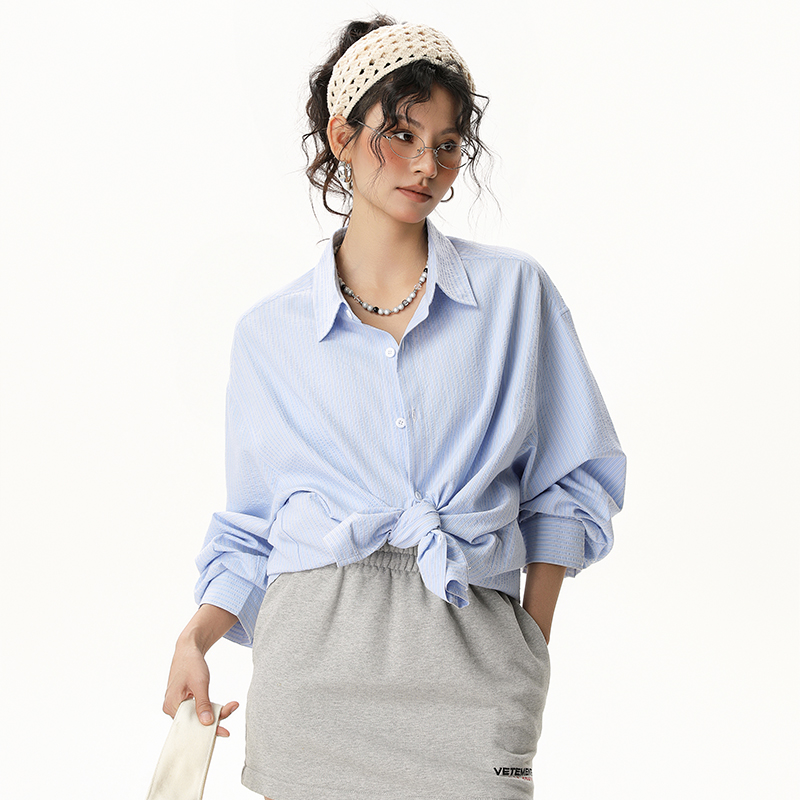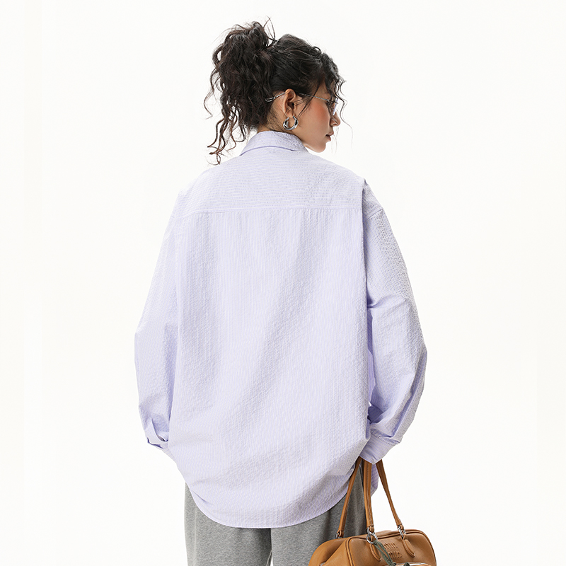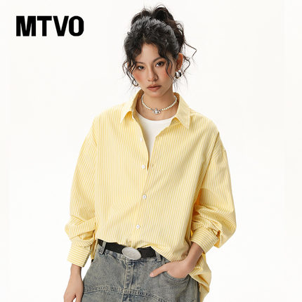 迈特优黄色条纹长袖衬衫男女春季少年感宽松衬衣开衫上衣外套