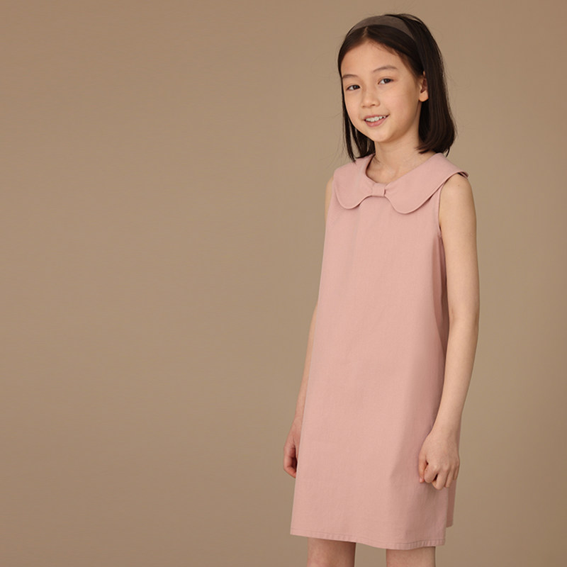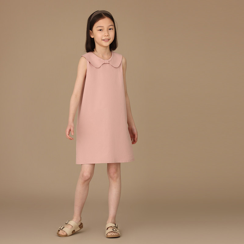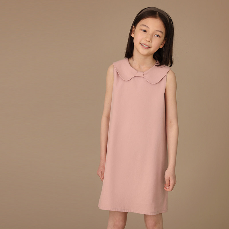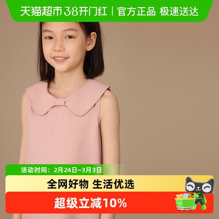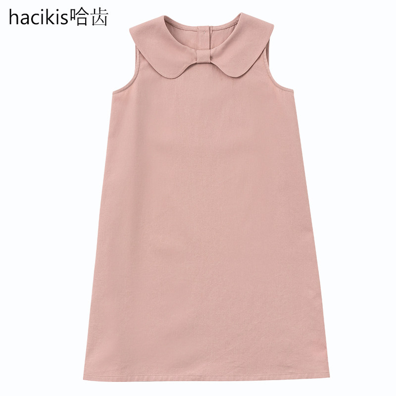 哈齿童装夏季新品亲肤棉质甜美蝴蝶结领亲子款无袖背心连衣裙女童