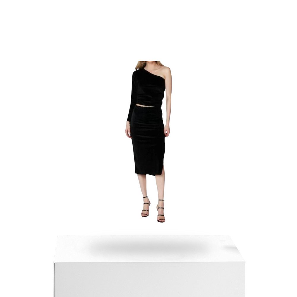 自营 bobi黑色开衩中长褶皱天鹅绒半身裙 - 黑色 美国奥莱直发