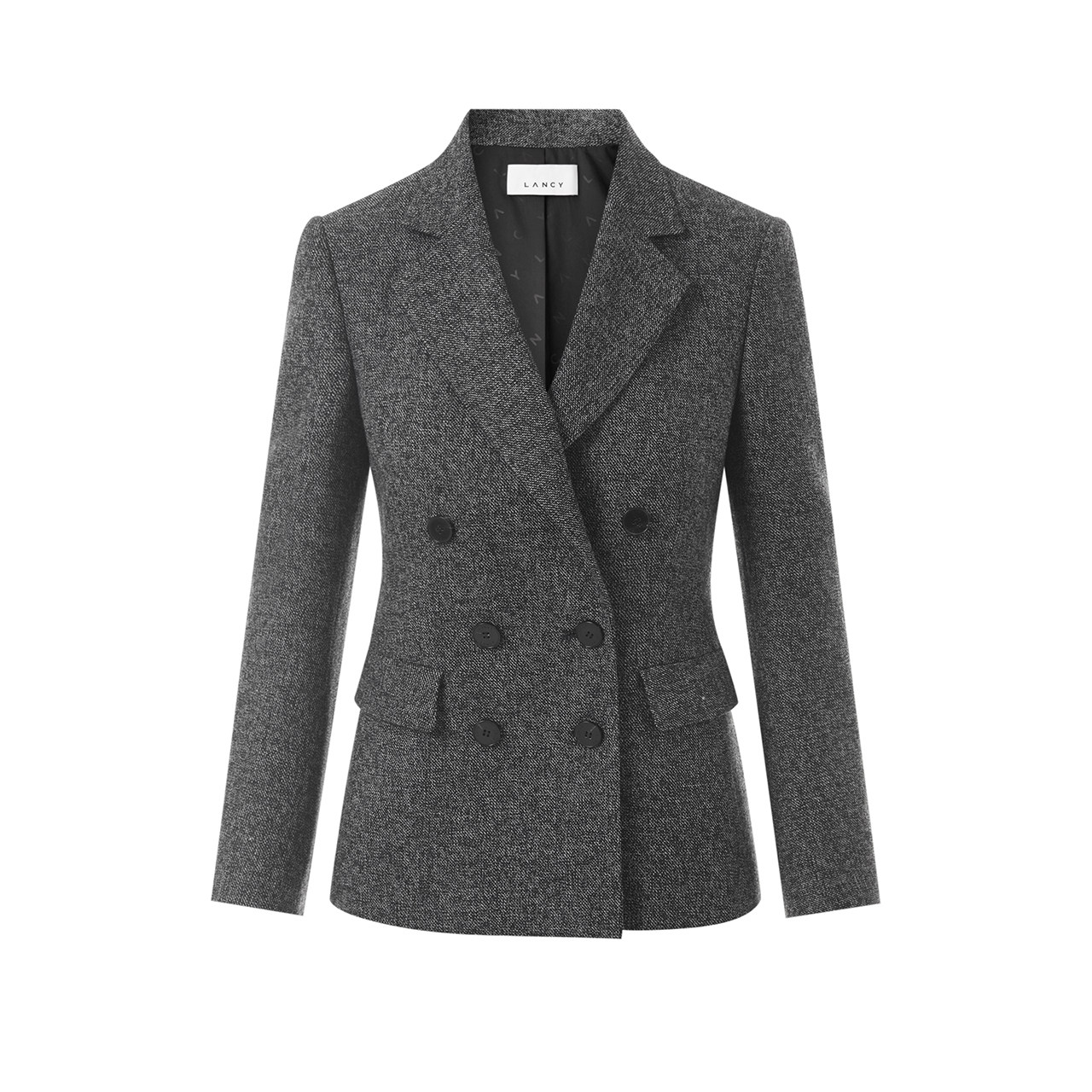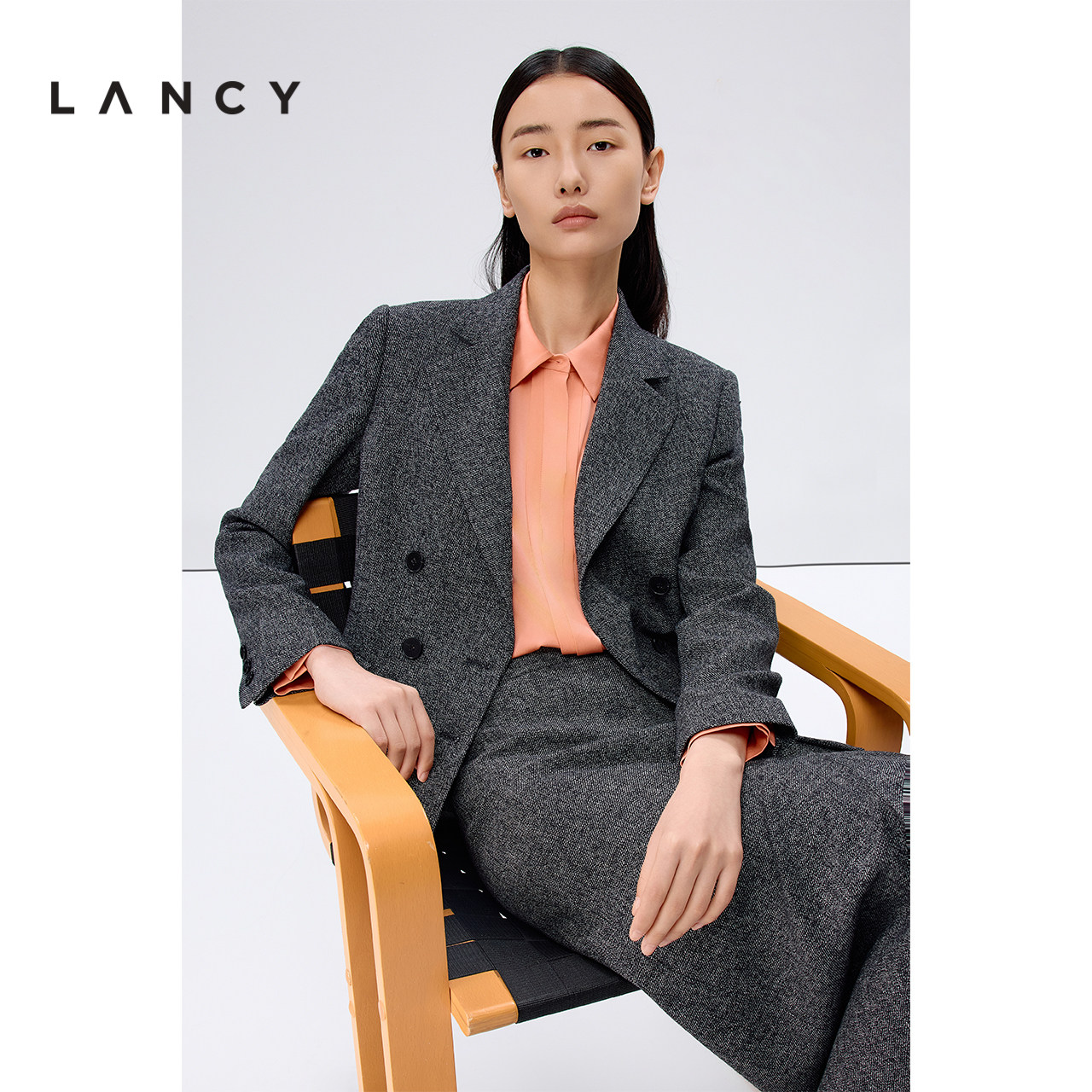 LANCY/朗姿2025秋新款羊毛双排扣修身西装外套女气质通勤职场上衣