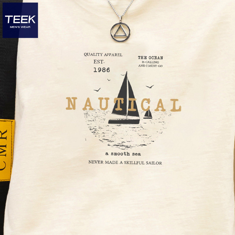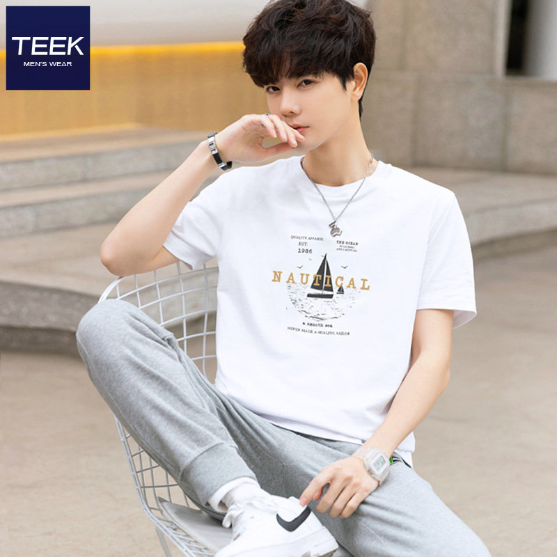TEEK纯棉短袖T恤男装 夏季新款帆船印花青少年学生潮流半袖上衣服